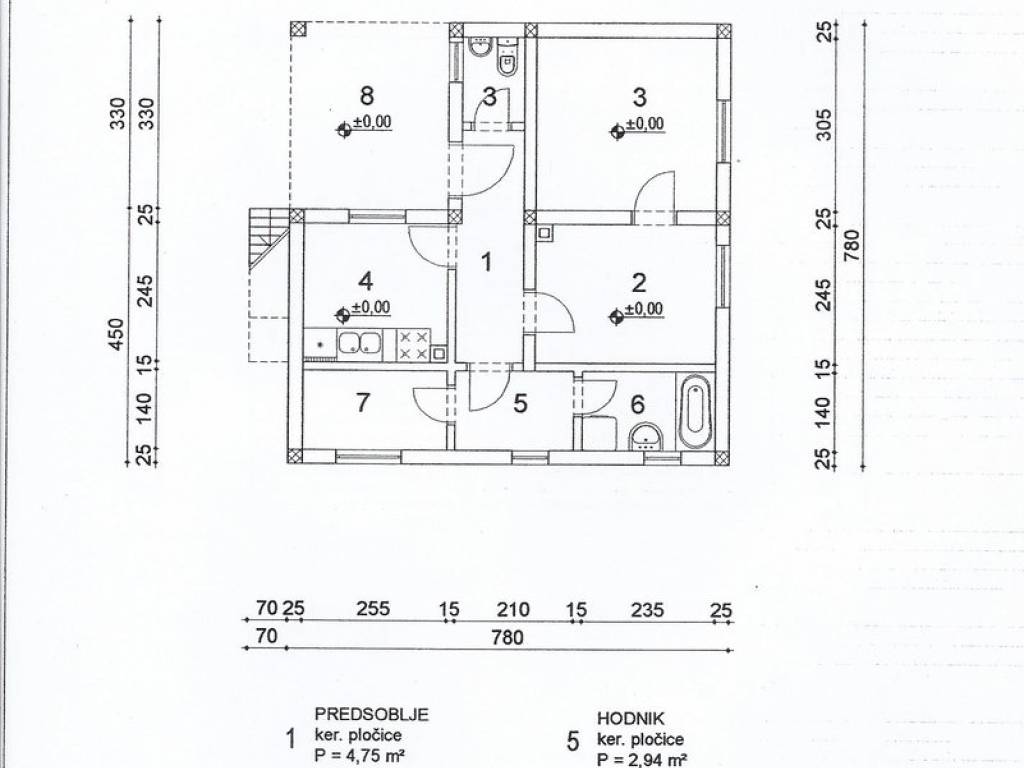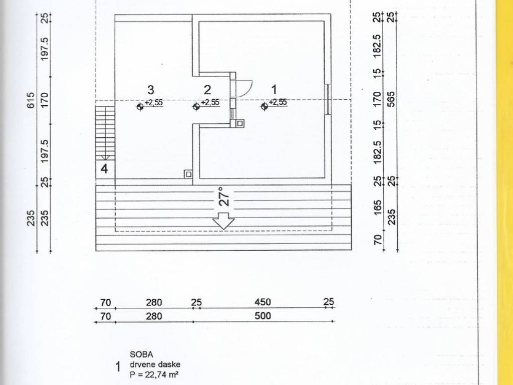 Sastoji se od prizemlja tlocrta 63 m2, i potkrovlja (pogledati tlocrt).