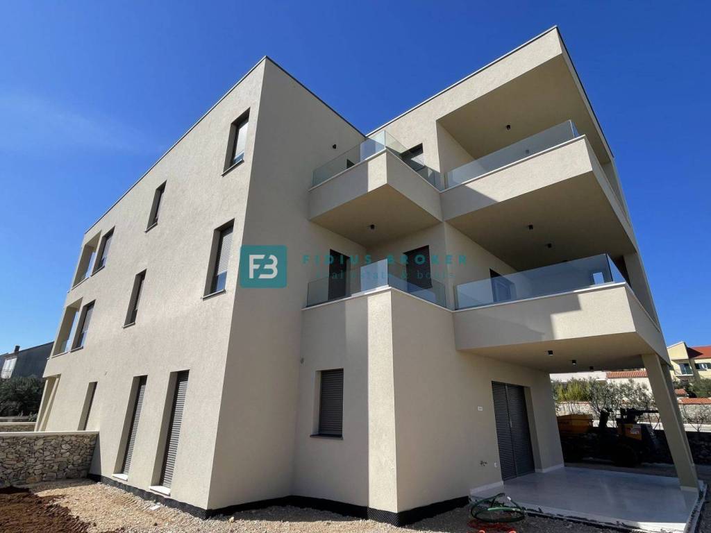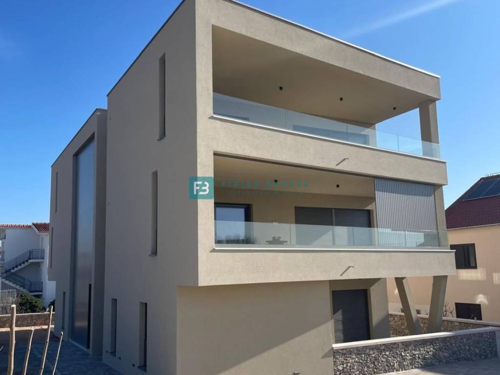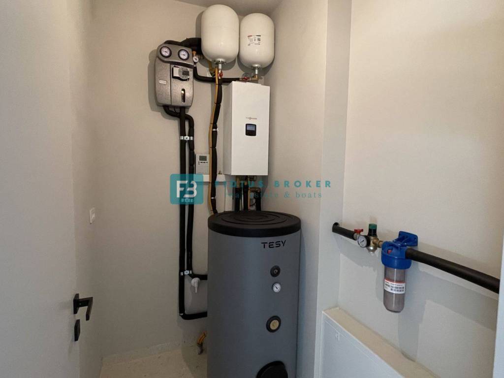 A new small residential building with a total of 4 apartments. The modern-looking residential building will consist of three floors: ground floor + 1st floor + 2nd floor. The ground floor is occupied by two apartments, and the 1st and 2nd floors are each occupied by one apartment for the entire floor of the building. The building is built with quality materials according to the latest construction standards: polystyrene facade, fire and burglar-proof entrance doors, aluminum joinery with triple-layer glass, aluminum sliding balcony doors, electric roller shutters with mosquito nets, floors covered with natural Plano stone, modern bathroom fixtures, air conditioning in the bedrooms and living room, TV connection in the bedrooms and living room, underfloor heating via heat pump, glass railings on the terraces. The building has an elevator. Apartments S1 and S2 each have one parking space within the building's courtyard, while apartments S3 and S4 each have two parking spaces. The planned completion date and move-in date - 03./ 2026.