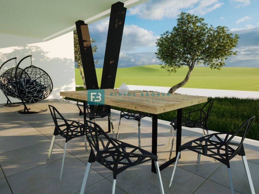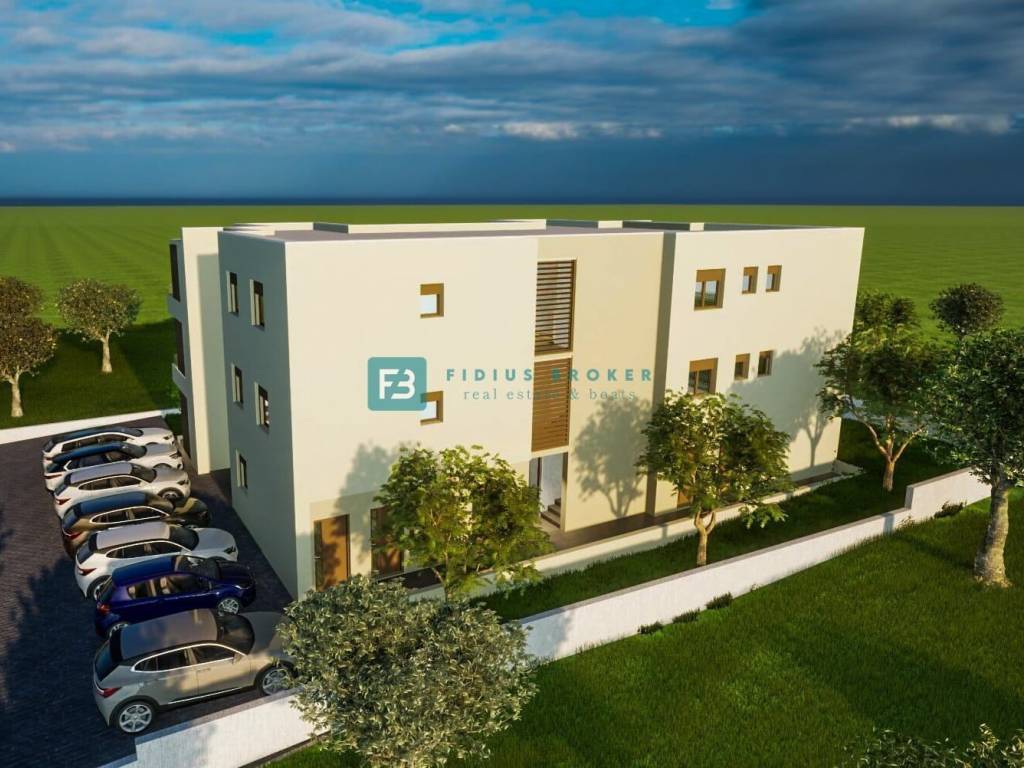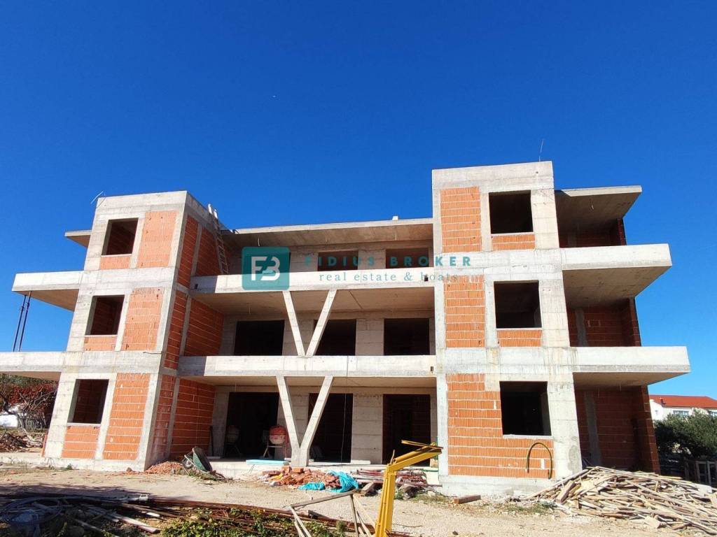The construction of a new residential building with a total of 9 apartments has begun. The modern-looking residential building will consist of three floors: ground floor + 1st floor + 2nd floor. The building is being built with quality materials according to the latest construction standards. Among the equipment we highlight: thermal facade, security entrance door, PVC joinery, electric roller shutters and mosquito nets, electric underfloor heating in the living room and bathrooms, modern bathroom fixtures, high-quality ceramic flooring, quality laminate in the bedrooms, inverter air conditioners in the living room and bedrooms, TV/SAT connection in the living room and bedrooms, glass railings on the terraces, car charger connection in the storage room. It is possible to purchase an additional parking space. The apartments on the ground floor have a corresponding part of the garden, while the apartments on the 1st and 2nd floors have a beautiful view of the sea, the city and the islands. The building has a connection to the city sewerage and an asphalted access road. The planned completion date of construction and move-in is spring 2026.