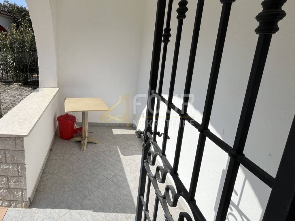 A tidy and well-maintained apartment is for sale in a quiet neighborhood in Rovinj, located on the ground floor of a small residential building. The living area of 52.20 m2 consists of a living room, kitchen with dining area, bedroom, hallway, bathroom, and storage room, with access to the apartment through a pleasant terrace of about 5 m2 overlooking the front yard of the building.