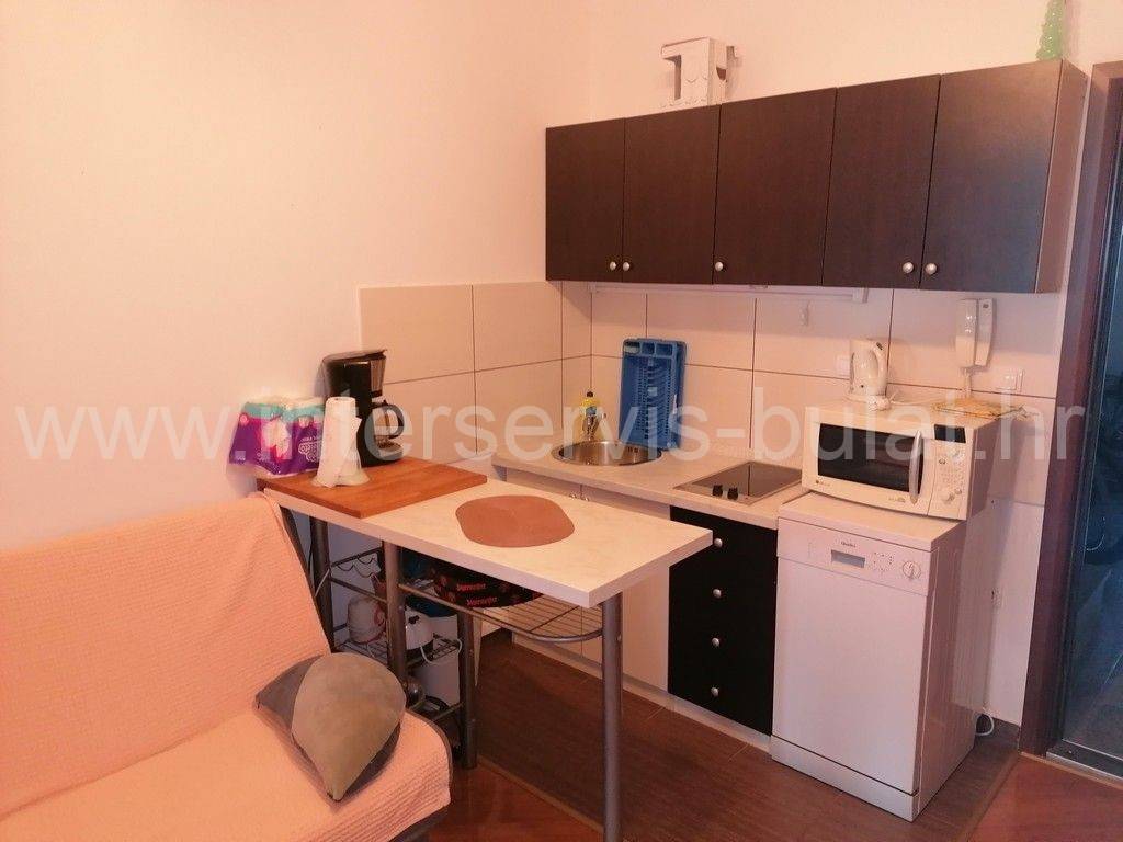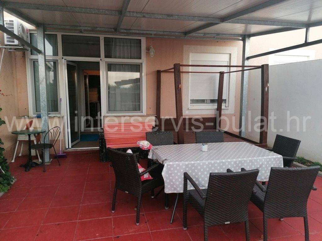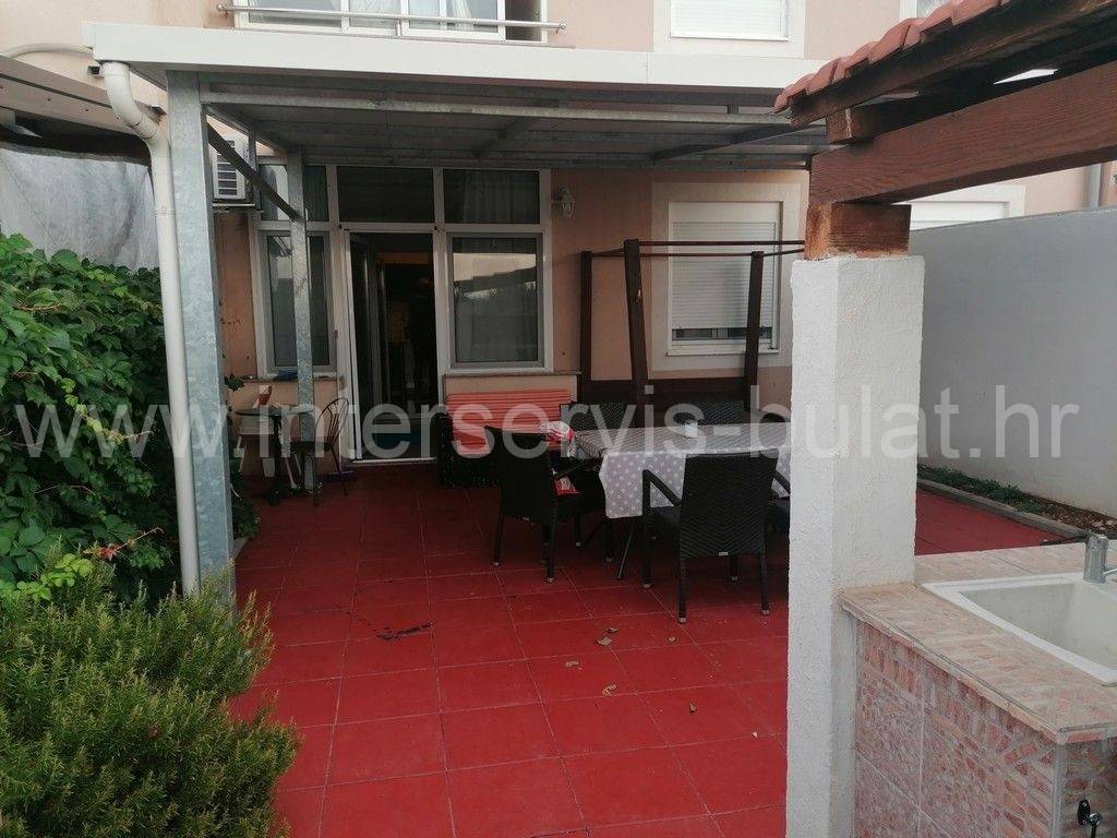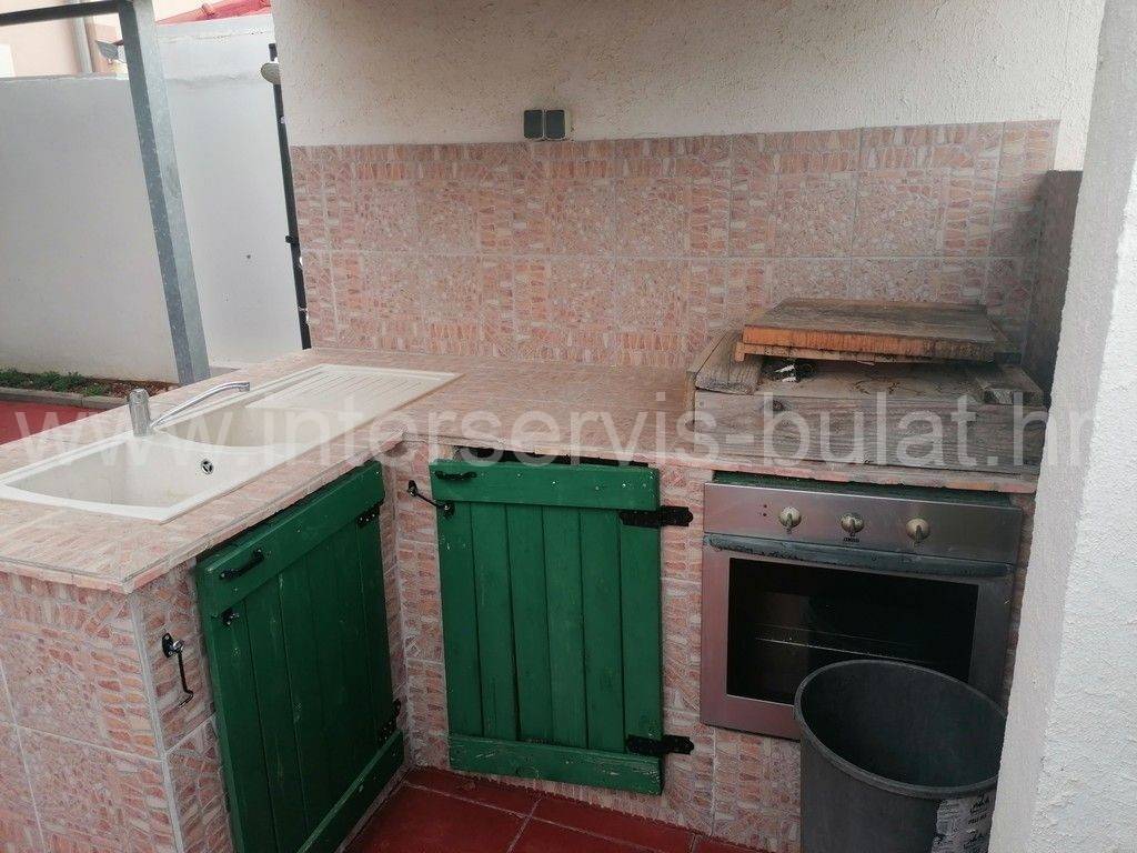 Ground Floor Apartment with Garden in Vodice Furnished one-bedroom apartment with a total area of 51.63 m, located on the ground floor of a multi-family building. The apartment is oriented to the east and has a living area of 30.85 m. It consists of a bedroom, a bathroom, an open kitchen with living room with access to a closed terrace and the garden. In the 19.37 m garden, there is a storage room of 4 m, a covered terrace of 25 m, a covered outdoor kitchen of 3.20 m, and a grill. The apartment also comes with a parking space. The apartment is located 970 m from the beach and 1,200 m from the city center. Tour of the property is available by prior arrangement and appointment booking (two days in advance). Please specify ID number of the property when contacting us. Looking forward to your call.