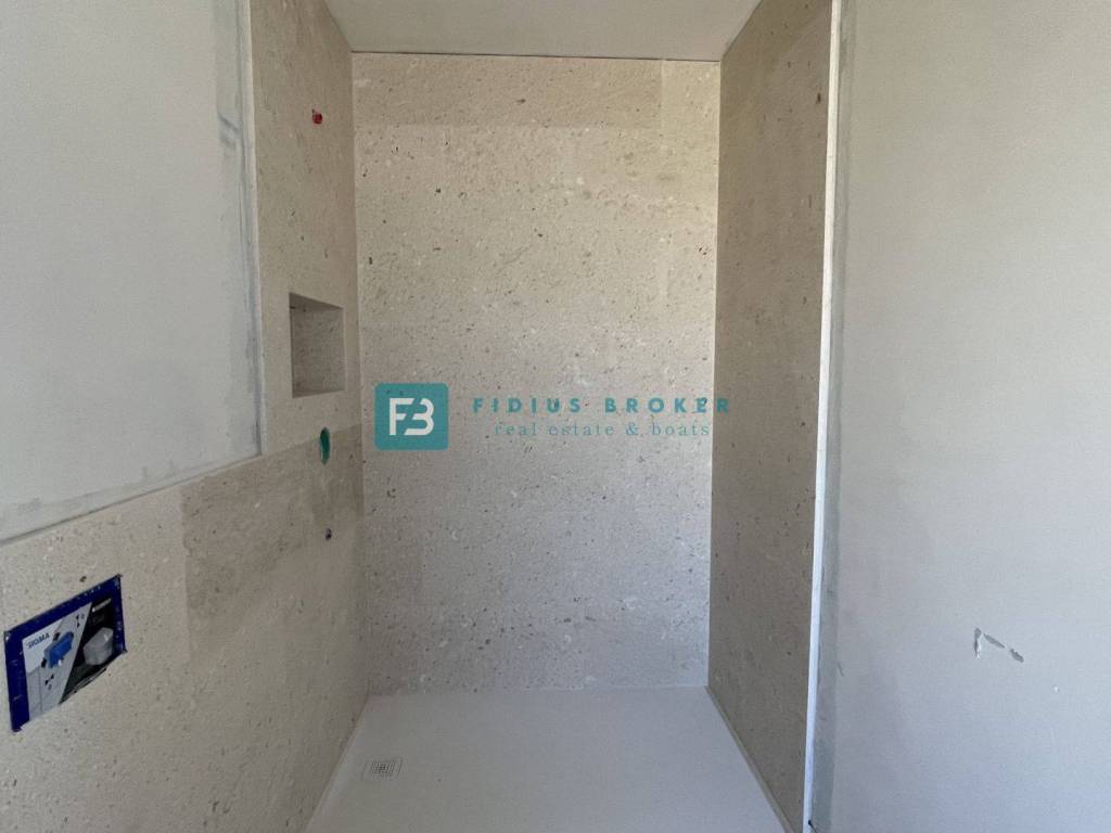 Apartment S9 located on the 2nd floor of the building, oriented to the south. It consists of an entrance area, laundry room, storage room, bedroom 1, bedroom, hallway, bathroom 1, bathroom 2, kitchen with dining room and living room with access to a spacious covered terrace of 15.83 m2 with a beautiful view of sea. The apartment has a storage room in the basement and one parking space. The total usable area is 93.76 m2. The price is: €421.920 (VAT included - the buyer is exempt from paying 3% real estate sales tax).