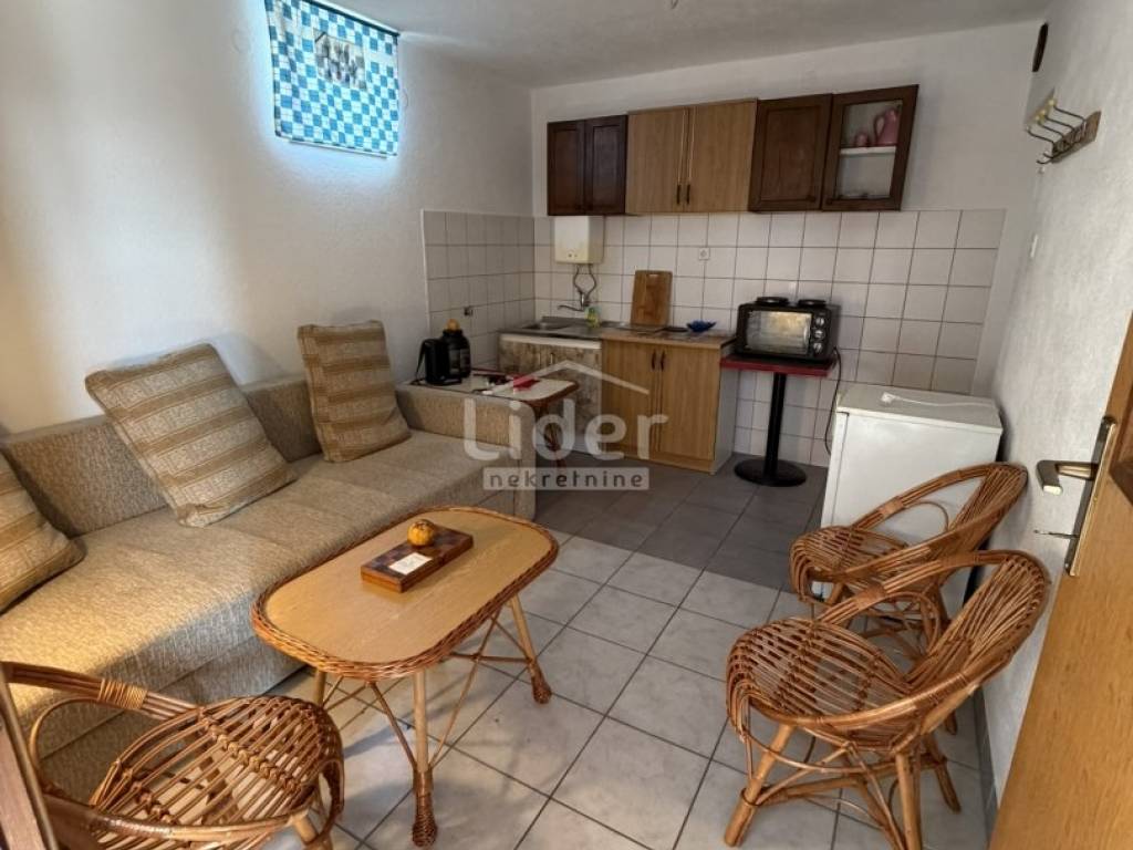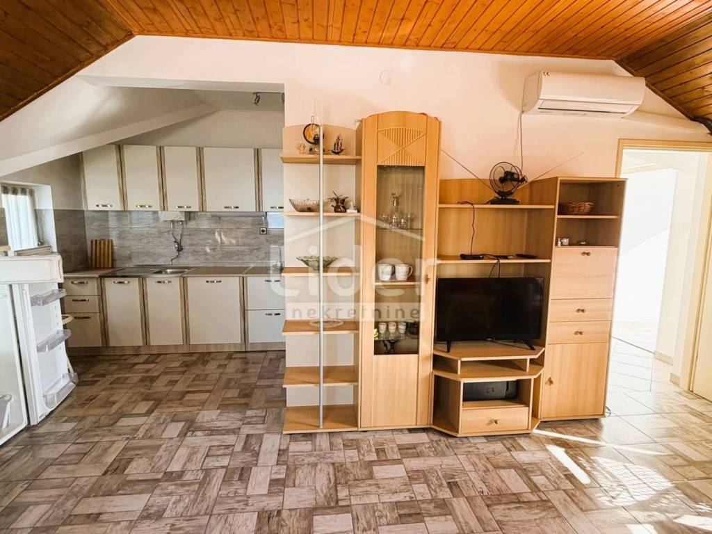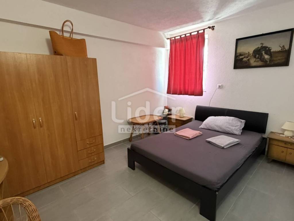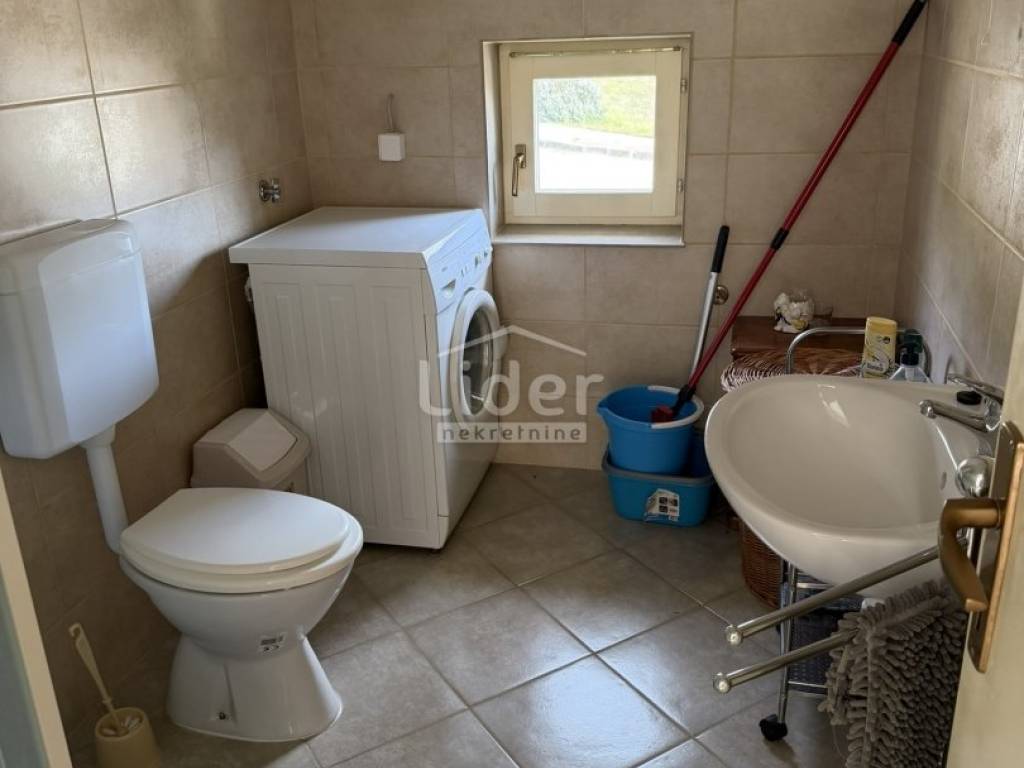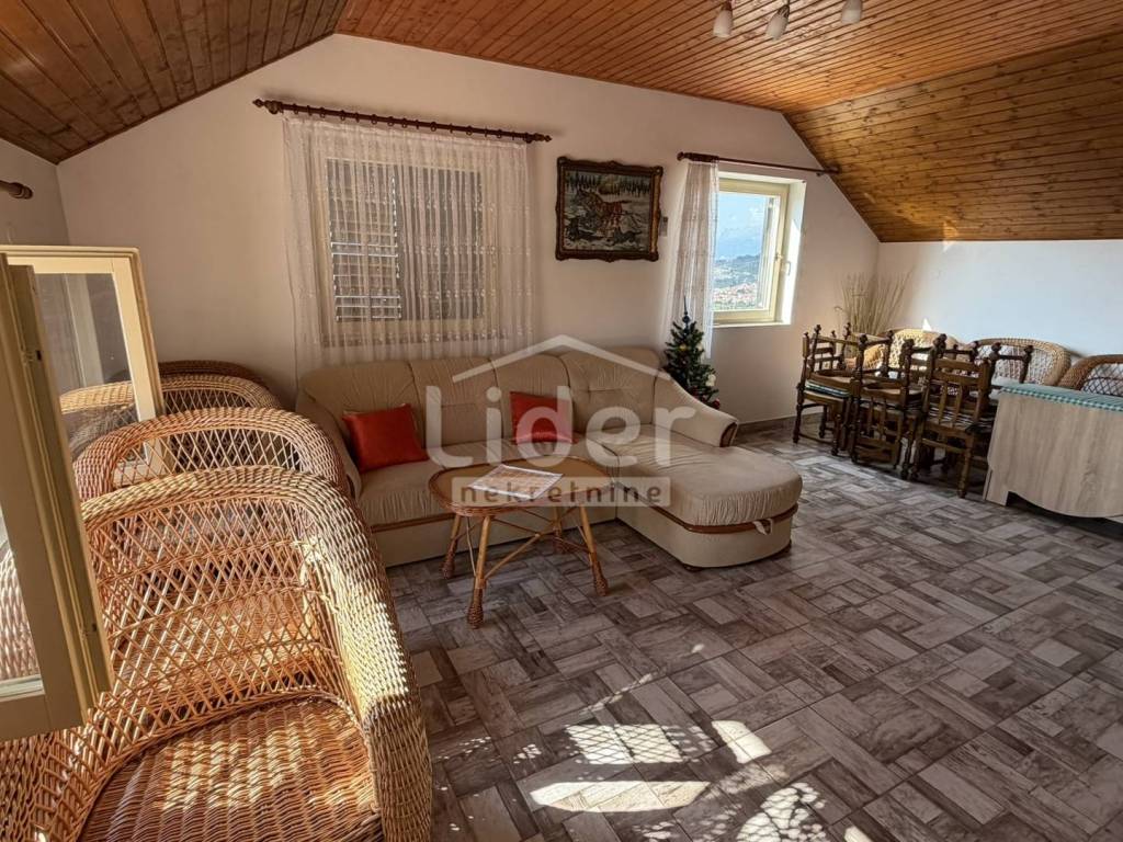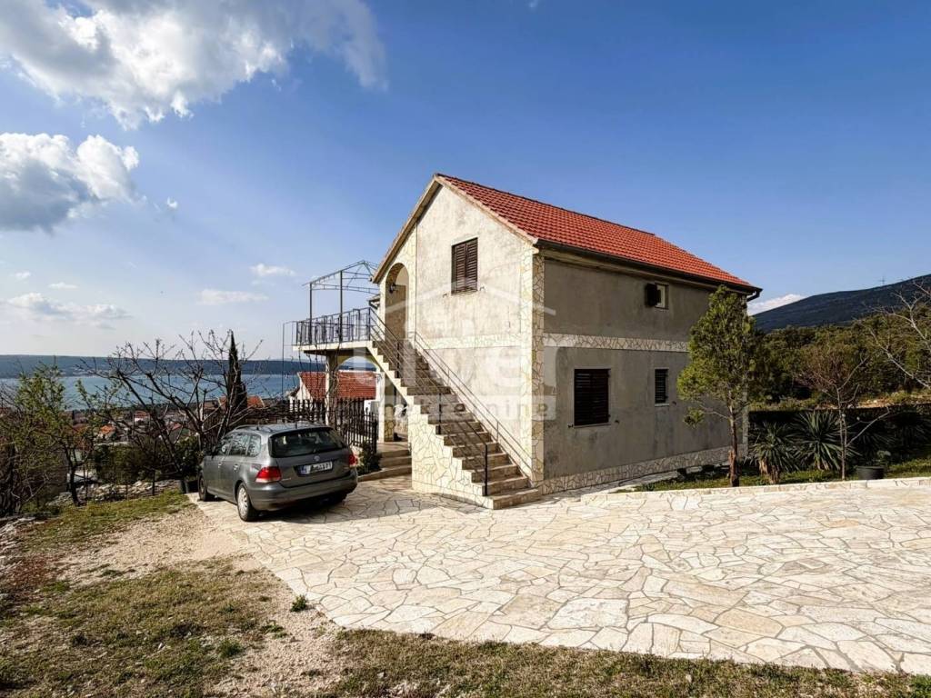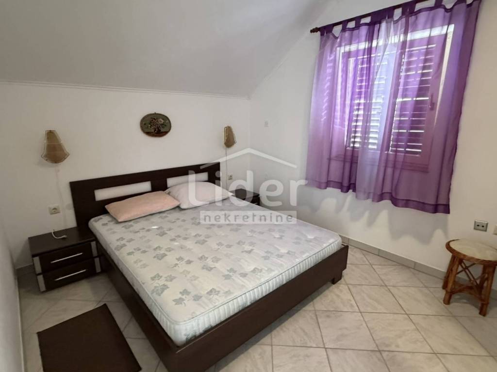 Gornji Karin - detached house with 3 apartments and panoramic sea view for sale. The house consists of three floors (basement, ground floor and first floor). Each floor has a separate entrance and its own storage room. In the basement there is an apartment consisting of two rooms and a bathroom. On the high ground floor there is an apartment consisting of two bedrooms, a living room with a kitchen, a bathroom, a hallway and a large terrace. In the high attic there is an apartment consisting of two bedrooms, a living room with a kitchen, a bathroom, a hallway and a large terrace. The house has a large garden, with plenty of parking... Possible construction of a swimming pool...