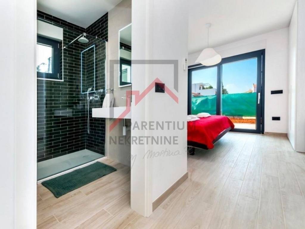In a quiet and green area, close to the center of Rovinj, is this beautiful, newly built house that offers the perfect blend of modern design, functionality and comfort. This elegant property offers everything you need for a comfortable life or a relaxing vacation in the heart of the Mediterranean.