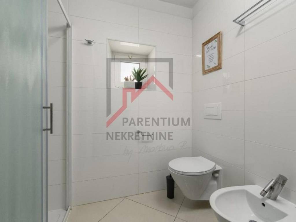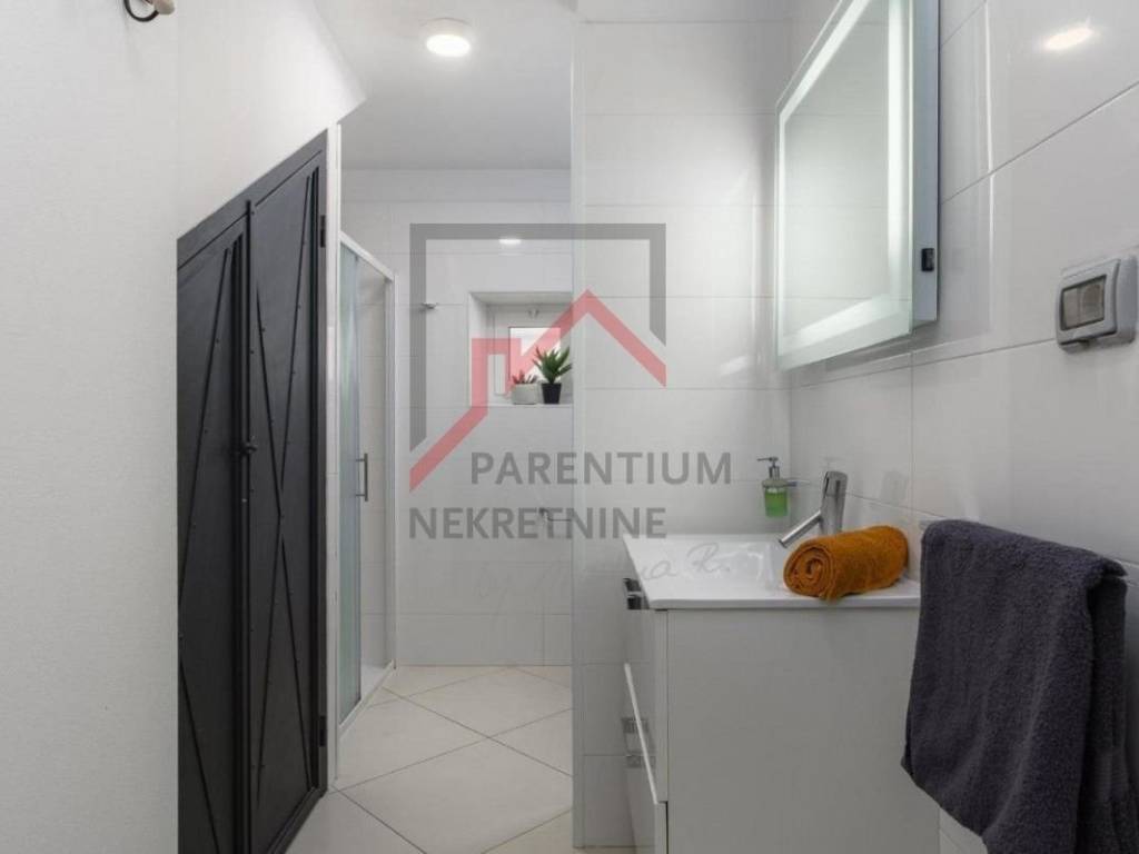 The ground floor offers a cozy and spacious living room that connects to an elegantly decorated kitchen and dining room, while a modern bathroom completes the functionality of the space. A large covered terrace with a fireplace creates an ideal ambiance for relaxing and enjoying the outdoors, and below is a spacious courtyard with a private pool - perfect for summer refreshments.