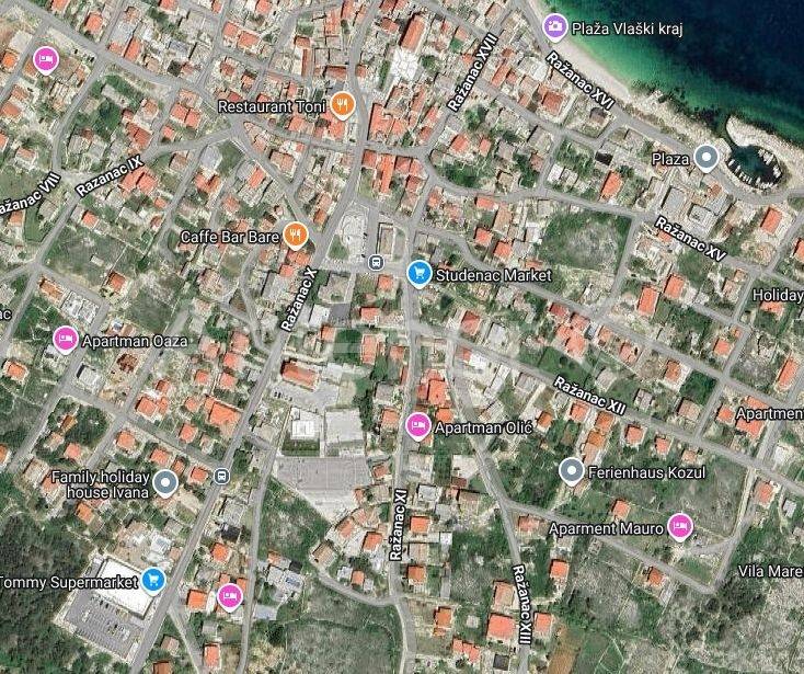 RAŽANAC - prodaje se građevinsko zemljište 460m2. Zemljišteje pravokutnog oblika cca 28x17m. Zemljišteje u blizini svih sadržaja potrebnih za svakodnevni život (škola, crkva, dućan). Udaljenost od mora zračne linije je oko 300m, a cestovna udaljenost oko 400m. Vlasništvo je uredno.