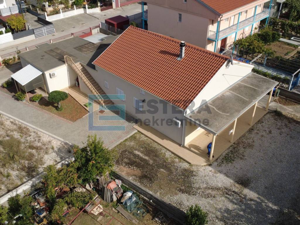 - Struktura: - Prizemlje: veliki, prostrani stan s ulaznim hodnikom, dnevnim boravkom, kuhinjom, blagovaonicom, 3 spavaće sobe, kupaonicom i WC-om.