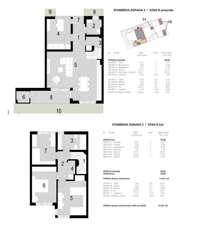 Sveta Nedjelja, Orešje, NOVOGRADNJA, projekt samostojeća zgrada s pripadajućim vrtovima i parkirnim mjestima na prekrasnoj mirnoj lokaciji u neposrednoj blizini svih sadržaja potrebnih za kvalitetno življenje. Planirani završetak gradnje je jesen 2026. godine.Stan B – peterosoban stan zatvorene površine 108,85 m2, terasa 3,72 m2, vrt 4,3 m2, i dva vanjska parkirna mjesta svako po 6,31 m2. Ukupno obračunski netto 131,61 m2.Stan će biti izgrađen na dvije etaže, prizemlje i kat. Prizemlje se sastoji od trijema (0,74 m2), ulaznog prostora (4,77 m2), kupaonice (3,29 m2), spavaće sobe (10,73 m2) koja se može prenamijeniti u home office, kuhinje, blagovaonice i dnevnog boravka (34,51 m2) otvorenog tlocrta s izlazom na terasu (3,72 m2) i vrt (4,3 m2), ostave (1,65 m2) i spremišta (3,59 m2). Na katu se nalaze hodnik (4,36 m2), tri spavaće sobe (15,54 m2), (13,20 m2), (10,73 m2), kupaonica (6,56 m2)i praonica (1,97 m2).Objekt je projektiran prema suvremenim standardima gradnje, te se tako i izvodi. S posebnom pažnjom je obraćena pozornost na sve potresne zahtjeve, temelji, podne i stropne ploče se izvode armirano-betonske, dok će zidovi biti izvedeni s Wienerberger opekom u kombinaciji s armirano-betonskim serklažama.VRHUNSKI MATERIJALI I OPREMA:- Višeslojni parket prve klase koji će biti ponuđen kupcima u više uzoraka kako bi svaki kupac individualno mogao izabrati po svom izboru tip parketa.- Svaka stambena jedinica će biti opremljena Daikin dizalicom topline sa spremnikom tople vode. Podno grijanje će biti ugrađeno u svim prostorijama, te će svaka prostorija imati ugrađen sobni WI-FI termostat. Termostatima će se moći upravljati putem aplikacije na prijenosnim uređajima(mobitel, tablet) kako bi imali uvid u stanje svih prostorija.- Objekt će se hladiti zidnim klima jedinicama. U prizemlju i na katu će biti ugrađena Daikin klima jedinica.- U kupaonicama će biti ugrađen tuš, no ima prostora i za ugradnju kade.- U kupaonicama će biti ugrađeno podno grijanje isto kao u svim prostorijama, no bit će i dodatna lojtrica radi veće sposobnosti zagrijavanja i sušenja ručnika.- Vrhunska PVC Salamander stolarija proizvođača s termix staklom u tri sloja kako bi se postigla maksimalna toplinska svojstva.- UPC fasadne obloge te izolacija od kamene vune debljine 10 cm za maksimalnu učinkovitost i minimalne troškove grijanja.- Aluminijske rolete na struju.- Sve stambene jedinice imaju zasebna brojila za sve priključke.Kupac ne plaća porez na promet nekretninama.Objekt se nalazi na izuzetnoj lokaciji, unutar 2 kilometara udaljenosti od škole i vrtića, trgovina, autobusne linije 119 za brz dolazak do okretišta Črnomerec, crkve i svih drugih potrebnih sadržaja. U neposrednoj blizini se nalazi jezero Rakitje kao odlično mjesto za izlete i rekreaciju.Za sve ostale upite nas slobodno kontaktirajte.... Više na eurovilla.hr, ID: 571984