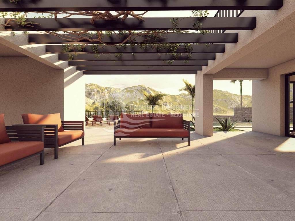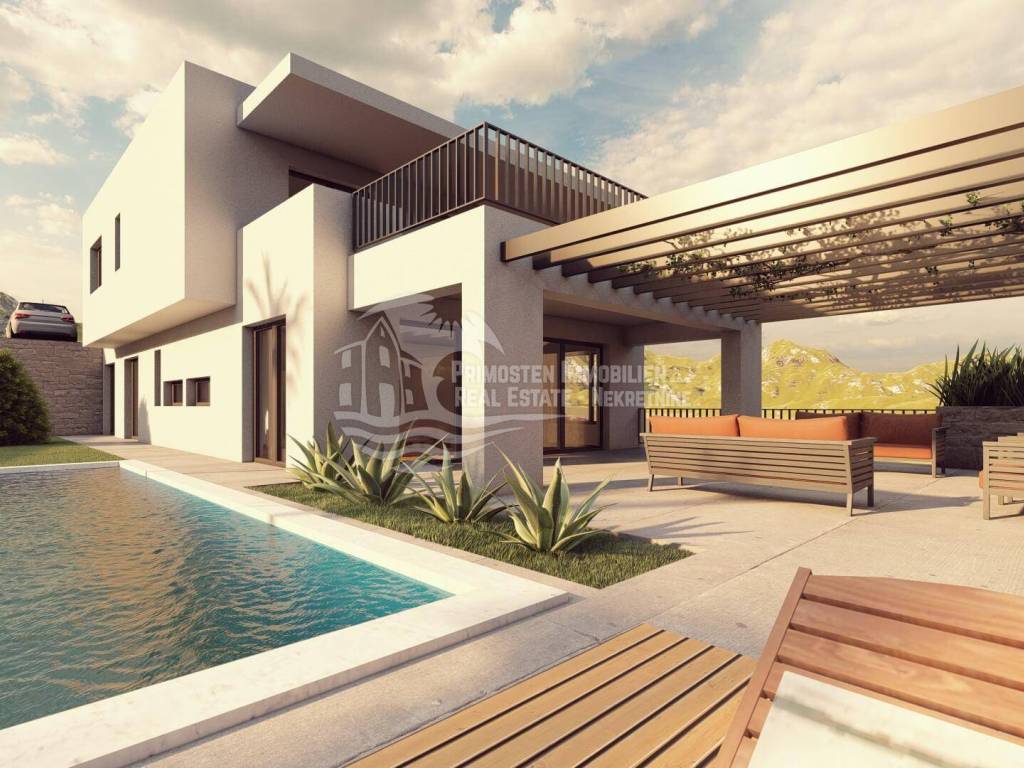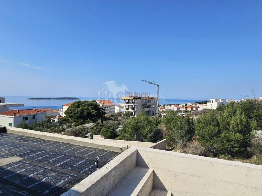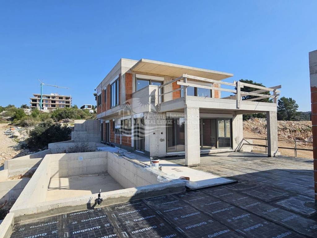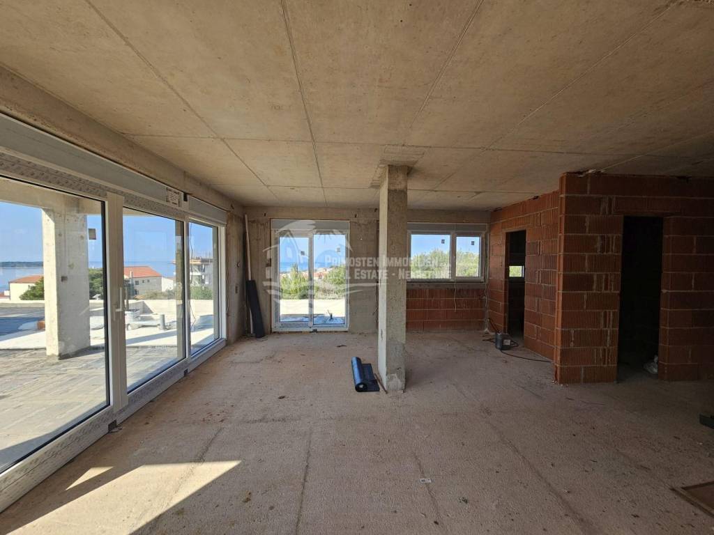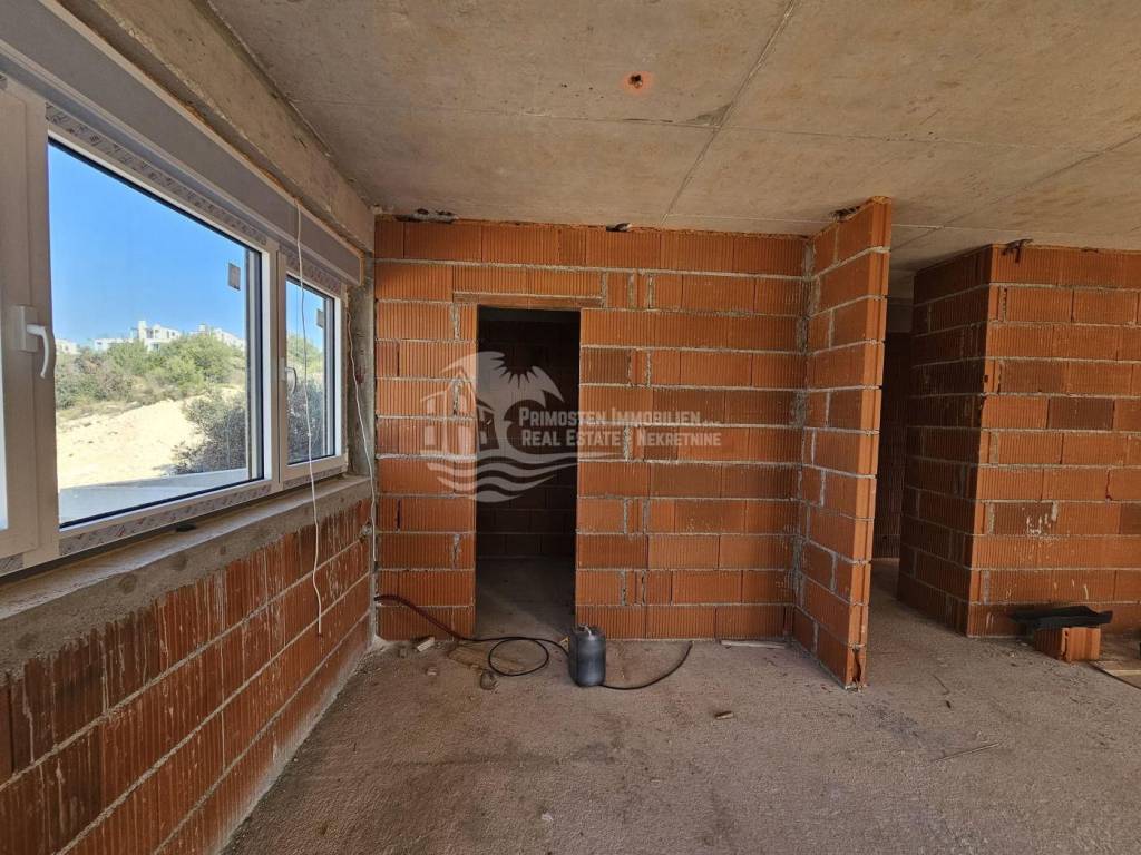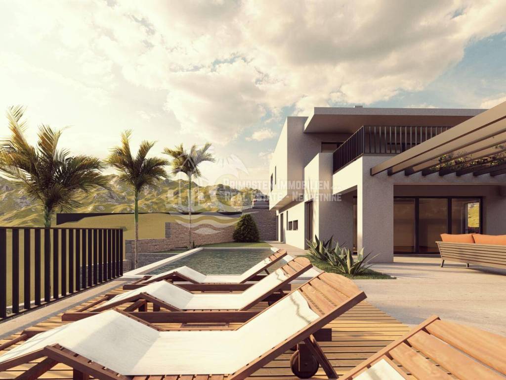 This high-quality, newly built luxury apartment is located in a prime area of Primošten and impresses with its well-thought-out living concept, spacious layout, and breathtaking sea views. Although legally an apartment, the property’s special terraced construction on a hillside gives almost the feeling of a private house. Due to the height difference between the floors, each unit enjoys maximum privacy, perfectly combining peace, exclusivity, and comfortable living. The apartment offers a generous living area of approximately 166 m² with a functional layout featuring four bedrooms, a spacious living kitchen as a central gathering space, two modern bathrooms with underfloor heating, and a separate guest WC. Large windows provide plenty of light and open up to a stunning sea view. Two of the bedrooms have direct access to the pool area, offering an exclusive living and holiday experience. The spacious outdoor areas are a particular highlight: in addition to a covered terrace, there is an open terrace of approximately 70 m², ideal for relaxing or socializing with family and friends. The covered outdoor kitchen is equipped with water and electricity connections, offering versatile usage options. An outdoor shower is also available – perfect for refreshing after a swim in the pool or the sea. The private pool with integrated counter-current system and heat pump allows for both relaxed swimming and sports swimming, extending the bathing season with comfortable water temperatures. As the property is still under construction, there is the opportunity to choose individual details such as tiles and finishes according to personal preferences. The current status is shell construction (rohbau), and completion is scheduled no later than spring 2027. High-quality features include electric blinds, modern construction, and a garage parking space. The location is highly attractive: the immediate surroundings feature new and high-quality residential buildings, and the sea and Primošten town center are only approximately 750 meters away. This property is ideal as an exclusive residence or holiday home and also as an attractive rental investment in one of the most desirable areas of the Dalmatian coast.