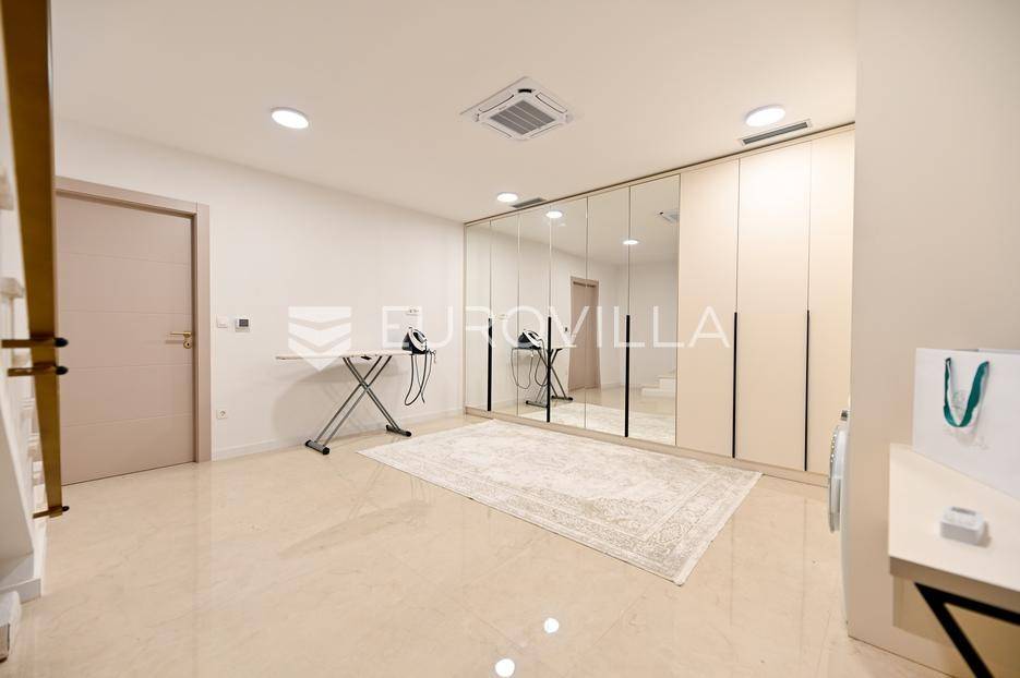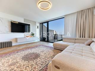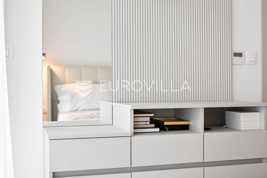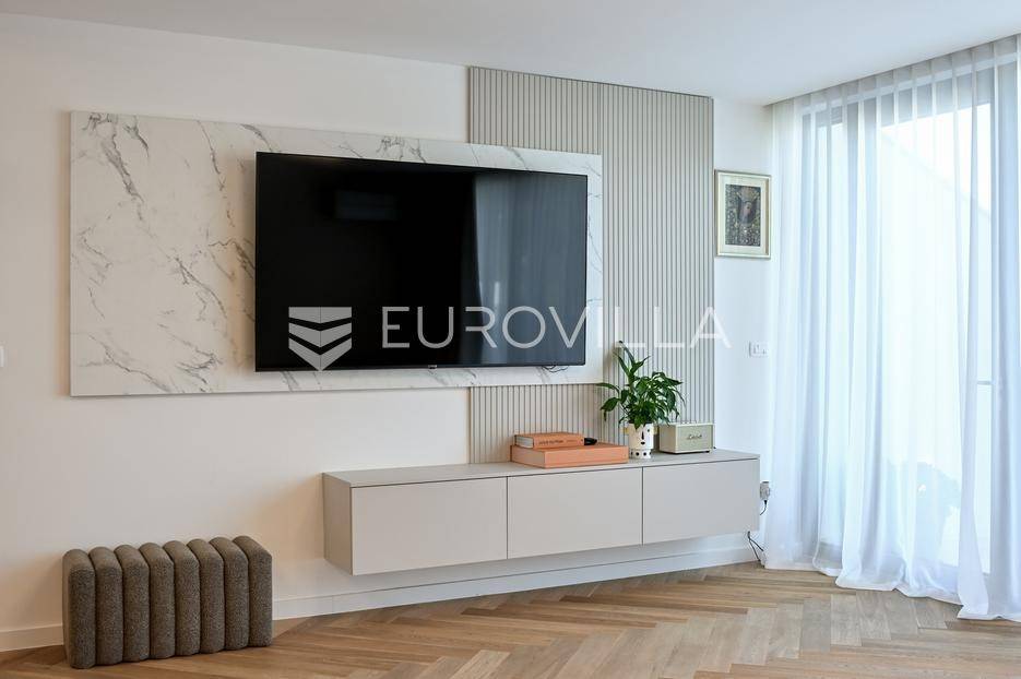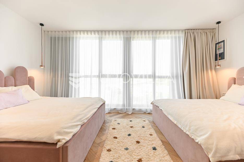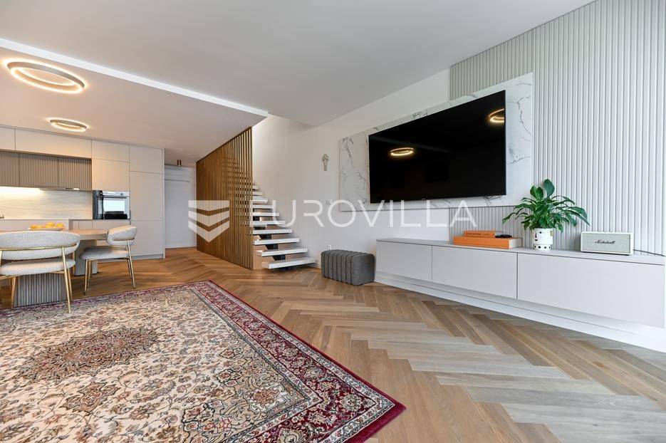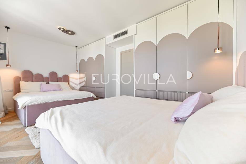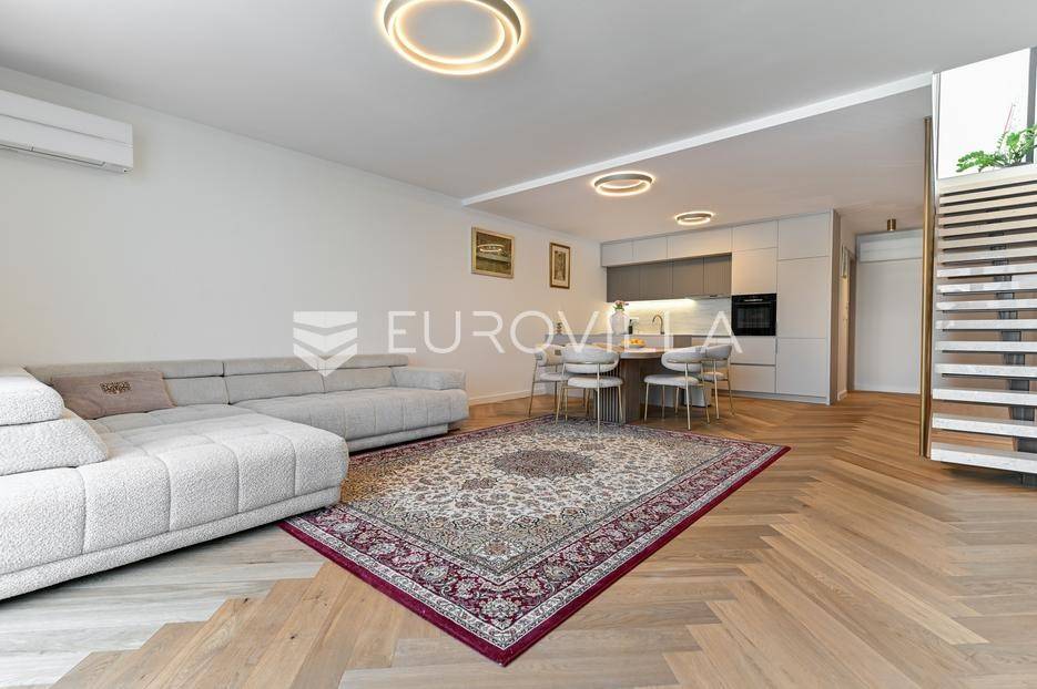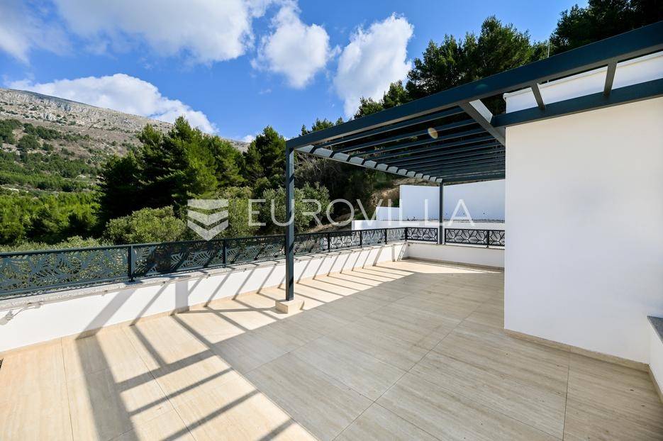 Podstrana, u modernoj novoizgrađenoj urbanoj vili, nalazi se dvosoban stan raspoređen na četiri etaže.Podrum je podijeljen na kupaonicu, pomoćni prostor i ostavu, ukupne površine 53, 9 m2. Prostor je opremljen s dvije klima jedinice te se lako može prenamijeniti u malu teretanu, igraonicu ili kućno kino.Na etaži prizemlja, gdje je ujedno i ulaz u stan, nalazi se prostran open-space dnevni prostor koji obuhvaća kuhinju opremljenu najmodernijim Bosch uređajima, dnevni boravak te jednu kupaonicu.Prva etaža zamišljena je kao spavaći dio te je podijeljena na dvije spavaće sobe i zajedničku kupaonicu. Jedna od soba ima vlastitu garderobu, dok je druga, gotovo 20 m² velika, potpuno ostakljena i pruža predivan pogled na more.Posljednja etaža nudi prostranu, djelomično natkrivenu krovnu terasu s otvorenim i prekrasnim pogledom na more.Ukupna površina zatvorenog stambenog prostora iznosi 162, 25 m2.Osim dizajnerski uređenog interijera, ova nekretnina nudi i okućnicu: terasu i vrt u prizemlju – prostor idealan za jacuzzi, sunčalište ili dječju igru, kao i nekoliko kaskadnih vrtova koji okružuju stan.Mikrolokacija je odlična, mirna i privatna a samo nekoliko minuta hoda udaljena od plaže i nove šetnice koja povezuje cijelo mjesto.Za sve dodatne informacije, stojimo vam na raspolaganju.... Više na eurovilla.hr, ID: 947726
