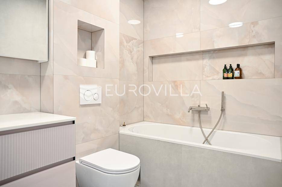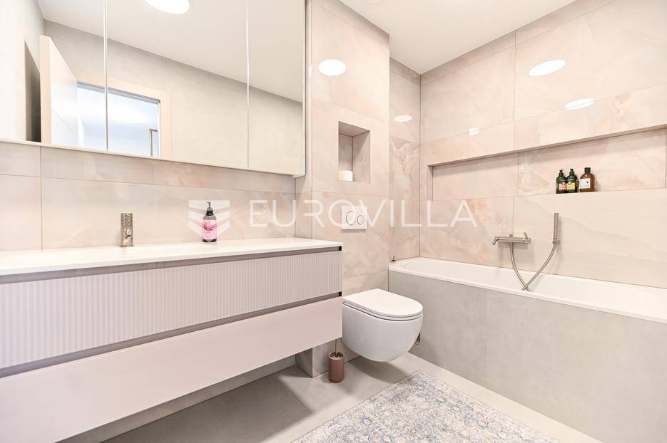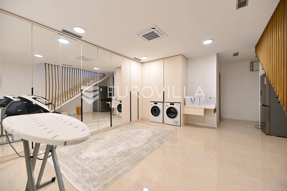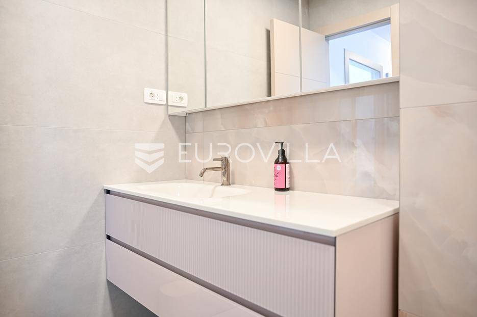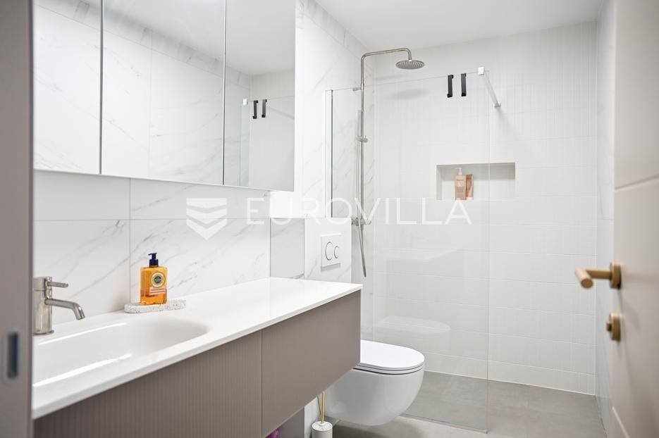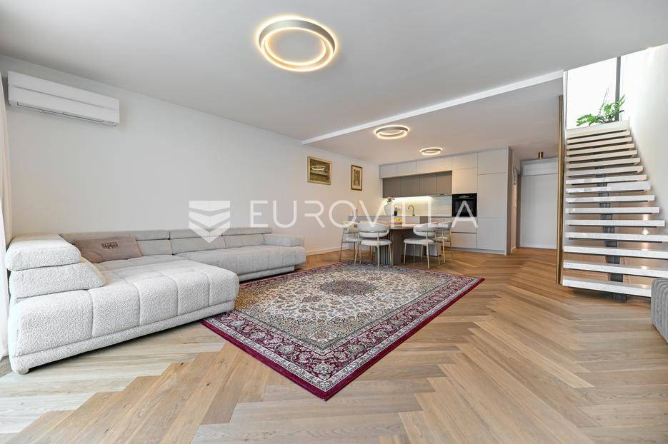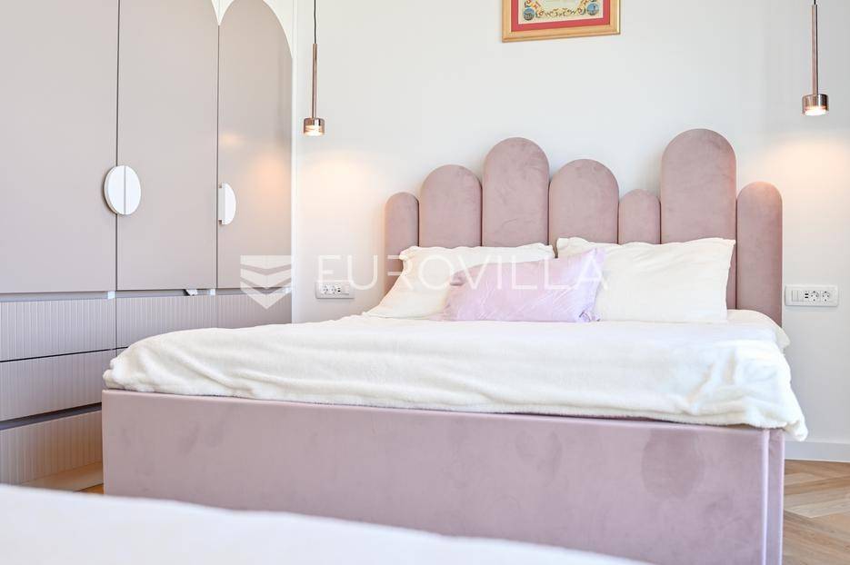 Podstrana, u modernoj novoizgrađenoj urbanoj vili, nalazi se dvosoban stan raspoređen na četiri etaže.Podrum je podijeljen na kupaonicu, pomoćni prostor i ostavu, ukupne površine 53, 9 m2. Prostor je opremljen s dvije klima jedinice te se lako može prenamijeniti u malu teretanu, igraonicu ili kućno kino.Na etaži prizemlja, gdje je ujedno i ulaz u stan, nalazi se prostran open-space dnevni prostor koji obuhvaća kuhinju opremljenu najmodernijim Bosch uređajima, dnevni boravak te jednu kupaonicu.Prva etaža zamišljena je kao spavaći dio te je podijeljena na dvije spavaće sobe i zajedničku kupaonicu. Jedna od soba ima vlastitu garderobu, dok je druga, gotovo 20 m² velika, potpuno ostakljena i pruža predivan pogled na more.Posljednja etaža nudi prostranu, djelomično natkrivenu krovnu terasu s otvorenim i prekrasnim pogledom na more.Ukupna površina zatvorenog stambenog prostora iznosi 162, 25 m2.Osim dizajnerski uređenog interijera, ova nekretnina nudi i okućnicu: terasu i vrt u prizemlju – prostor idealan za jacuzzi, sunčalište ili dječju igru, kao i nekoliko kaskadnih vrtova koji okružuju stan.Mikrolokacija je odlična, mirna i privatna a samo nekoliko minuta hoda udaljena od plaže i nove šetnice koja povezuje cijelo mjesto.Za sve dodatne informacije, stojimo vam na raspolaganju.... Više na eurovilla.hr, ID: 947726