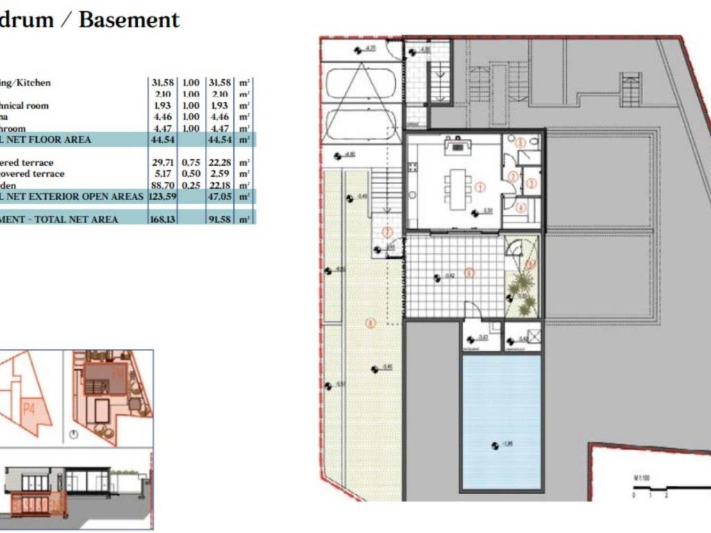 dining room, kitchen, bathroom with sauna, fitness room, storage room, covered and uncovered terrace, fenced garden. It has its own 47m2 swimming pool, large sundeck and summer kitchen and private parking.