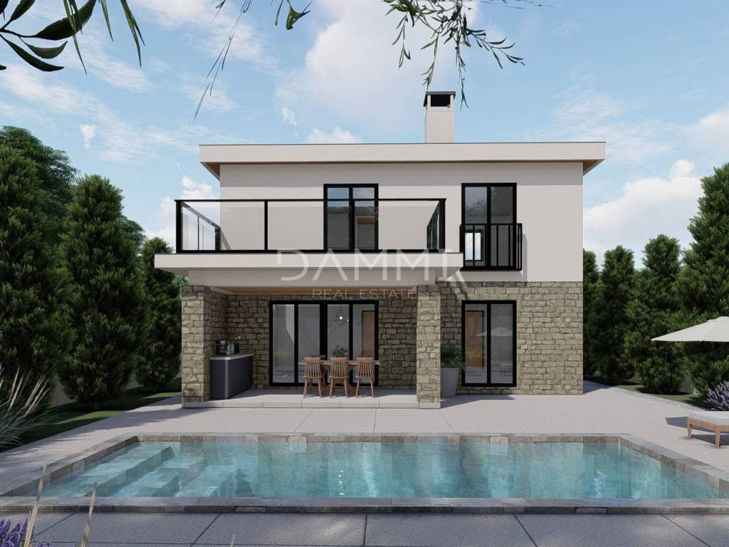 This modern stone house built in 2026 offers an exceptional combination of contemporary functionality and design approach, on a plot measuring 610 m2.