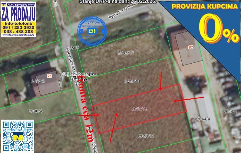 GRAĐEVINSKE PARCELE NA MIRNOJ STAMBENOJ LOKACIJI U ČEPINU!!! ULICA IVANE BRLIĆ MAŽURANIĆ!! POVRŠINA 467 M2!!! FRONTA CCA 12m!! DOSTUPNA KOMPLETNA KOMUNALNA INFRASTRUKTURA (VODA, STRUJA, ODVODNJA)!!! MIRNA ZONA GRADNJE!!! VLASNIK DAJE KUPCU I IDEJNO RJEŠENJE ZA IZGRADNJU STAMBENE KUĆE!! Prodajemo građevinsku parcelu u Čepinu u ulici Ivane Brlić Mažuranić. Parcela ima površinu od 467m2, dok je fronta oko 12 metara. Parcela je prazna, bez objekta na njima. Dostupna je kompletna komunalna infrastruktura potrebna za nesmetan početak gradnje (struja, voda, odvodnja). Kupac dobiva na poklon i idejno rješenje za izgradnju obiteljske stambene kuće. U blizini se nalaze svi sadržaji neophodni za mlade obitelji s djecom. PARCELA DOSTUPNA ZA PRODAJU: - kčbr. 2043/12 - 467 m2 - CIJENA PARCELE IZNOSI 20.000 EUR-a! PROJEKT ZA KUĆU (VERZIJA 1): 1. Garaža 27,30 m2 2. Ulazni hodnik 11,90 m2 3. Kupaonica 3,70 m2 4. Ostava 3,10 m2 5. Dnevna soba + blagovaonica 46,90 m2 6. Kuhinja 16,30 m2 7. Natkrivena terasa 33,90 m2 8. Hodnik + stubište 12 m2 9. Gospodarstvo 3,40 m2 10. Kupaonica 7,80 m2 11. Soba 20,50 m2 12. Soba 11,60 m2 13. Soba 16,40 m2 14. Loggia 11,60 m2 UKUPNO NETTO: 226,40 m2 - ODLIČNA STAMBENA LOKACIJA! - NEPOSREDNA BLIZINA OSNOVNE ŠKOLE! - NEPOSREDNA BLIZINA GRADSKOG PRIJEVOZA! - NEPOSREDNA BLIZINA PARKA I DJEČJEG IGRALIŠTA! - BLIZINA TRGOVAČKOG CENTRA! - BLIZINA POŠTE! - BLIZINA LJEKARNE! - DOKUMENTACIJA O VLASNIŠTVU JE UREDNA! - DETALJNIJI SLIKOVNI I TEKSTUALNI OPIS NEKRETNINE MOŽETE DOBITI DOLASKOM U NAŠ URED TRG SLOBODE 8, OSIJEK! PRODAJA I INFORMACIJE: 031/200-742 091/283-2930 tasmannekretnine@gmail.com VIŠE NA www.tasman-nekretnine.hr!!!
