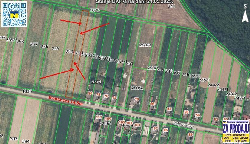 NARD! ZEMLJIŠTE U GRAĐEVINSKOJ ZONI (TRENUTNO SE VODI KAO POLJOPRIVREDNO)!! 2620 M2, FRONTA CCA 14 METARA!! DOSTUPNA VODA, PLIN, STRUJA, TELEFON!! USKORO KANALIZACIJA!! AGENCIJSKU PROVIZIJU PLAĆA ISKLJUČIVO PRODAVATELJ!! Poljoprivredno zemljište nalazi se u Nardu, Valpovačka ulica. Ukupna površina parcele iznosi 2620 m2 dok je fronta cca 14 metara. Zemljište se trenutno vodi kao poljoprivredno (na parceli je posijana soja), ali se nalazi u građevinskoj zoni (moguća je prenamjena). Zemljište je u ARKOD sustavu! Ispred parcele su dostupni struja, voda, plin i telefon (uskoro će biti i kanalizacija) - DOKUMENTACIJA O VLASNIŠTVU JE UREDNA! - DETALJNIJI SLIKOVNI I TEKSTUALNI OPIS NEKRETNINE MOŽETE DOBITI DOLASKOM U NAŠ URED, TRG SLOBODE 8, OSIJEK! PRODAJA I INFORMACIJE: 031/200-742 098/438-208 091/283-2930 ksabic@tasman-nekretnine.hr VIŠE ZEMLJIŠTA NA www.tasman-nekretnine.hr