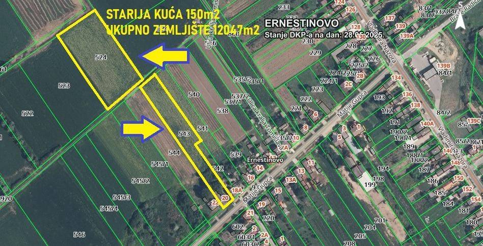 ernestinovo!! ulica matije gupca br.20!! starija stambena kuća za adaptaciju ili rušenje površine 150m2!! velika parcela/poljoprivredna površina ukupno 12047m2!! blizina centra ernestinova!! blizina osijeka!! velika prednja fronta 26m!! kolni ulaz u dvorište!! brzi info telefon: 091/283-2930! ekskluzivno nudimo za prodaju stariju stambenu kuću za adaptaciju ili rušenje sa velikom parcelom na kojoj se nalazi obradiva poljoprivredna površina. stambena kuća ima površinu oko 150m2. parcela se proteže na ukupnoj površini od 12047m2. prisutni svi infrastrukturni priključci. velika prednja fronta 26m, kolni ulaz u dvorište. brzi info telefon: 091/283-2930! -mirna zona stanovanja! -blizina centra, blizina osijeka! -neposredna blizina vrtića i škole! -neposredna blizina supermarketa! -parking za više vozila! -prostrano dvorište i okolica! -blizina ambulante, ljekarne! -blizina pošte, pekare! -blizina benzinske crpke! -dokumentacija o vlasništvu je uredna! - detaljniji slikovni i tekstualni opis nekretnine možete dobiti dolaskom u naš ured, trg slobode 8, osijek! prodaja i informacije: 031/200-742 098/438-208 091/283-2930 092/238-6424 tasmannekretnine@gmail.com više stambenih kuća na www.tasman-nekretnine.hr