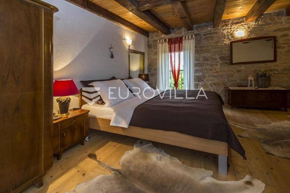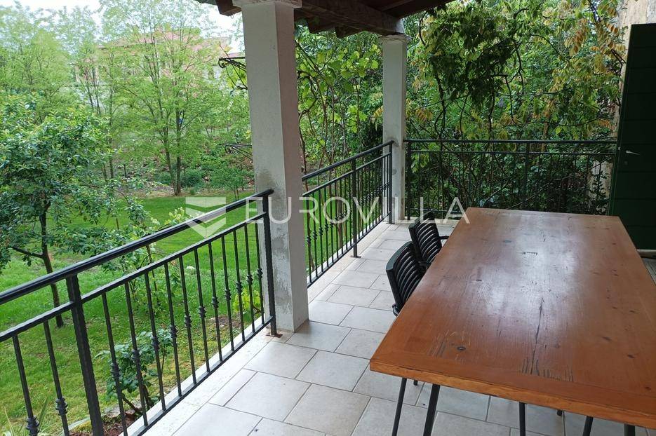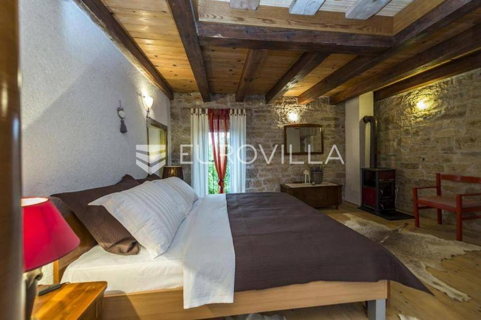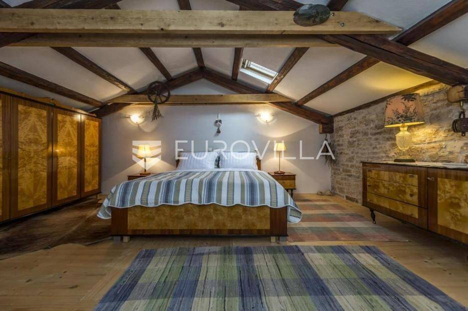 Istra, okolica Višnjana, dugoročni najam kamene kuće s velikom okućnicom dostupna od jeseni 2026.U okolici Višnjana, iznajmljuje se kamena duplex kuća, površine 110 m². Kuća je dio stare kamene kuće izgrađene 1937. godine, a u potpunosti je renovirana i nadograđena 2010. godine.Kuća se prostire na tri etaže: prizemlje, prvi kat i potkrovlje, te je pogodna za do 4 osobe.Raspored prostorijaPrizemlje:dnevni boravakblagovaonicakuhinjakupaonica (tuš kabina, WC)izlaz na natkrivenu terasu s pogledom na vrt i bazenPrvi kat:prostrana spavaća sobakupaonica (tuš kabina, WC)Potkrovlje:druga spavaća sobaSve etaže povezane su unutarnjim stepenicama. Kuća je izolirana i pruža privatnost.Grijanje i hlađenje osigurano je klima uređajima u spavaćim sobama te mramornim pločama dok se peć na drva nalazi u dnevnom boravku.Na velikoj parceli, ograđenoj kamenim zidom, nalazi se:bazen 7 × 3,5 mstara stabla duda i orahamali ekološki vrtprostor za parkiranjeKuća se nalazi u mirnom selu Zoričići, u blizini Višnjana, poznatog po zvjezdarnici, vinskim cestama i brdovitom krajoliku pogodnom za šetnju i biciklizam. Poreč i more udaljeni su oko 15 km.Udaljenostiplaža: 17 kmzračna luka: 55 kmautocesta: 3 kmželjeznička stanica: 3 kmluka: 17 kmKućni ljubimci na upit.Cijena najma: 2.000 € mjesečno + režije, uz polog u visini dvije mjesečne najamnine. Održavanje bazena i vrta uključeno u cijenu.Za više informacija i razgledavanje stojimo na raspolaganju.... Više na eurovilla.hr, ID: 778025