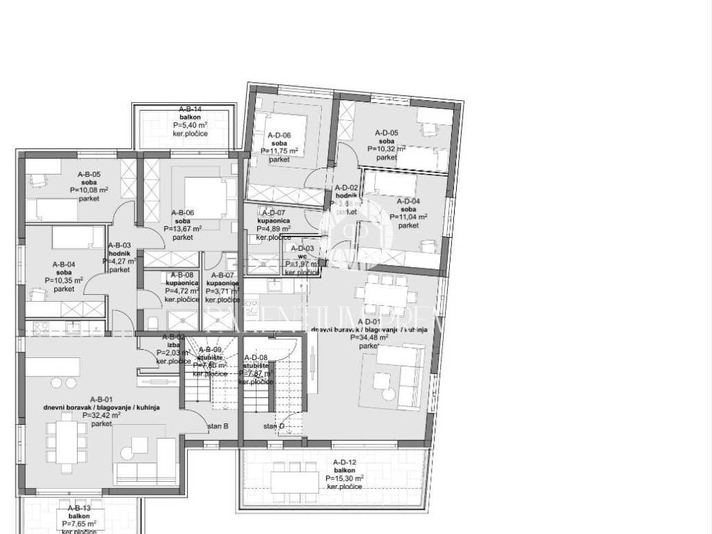 The floors in the apartment will be covered with high-quality parquet, except for the floors in the bathrooms and the kitchen, where top quality ceramics will be installed.