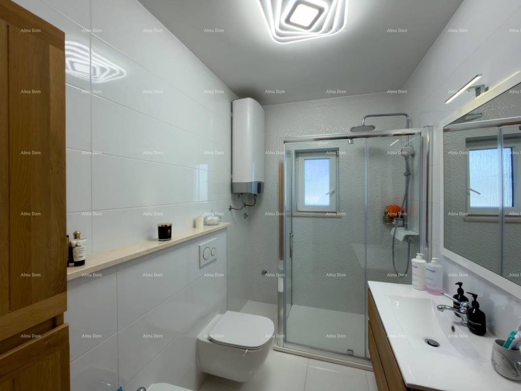 The second apartment on the ground floor, measuring 50 m, consists of a living room, kitchen, bedroom, and bathroom. The apartment on the first floor has a net area of 115 m with a terrace and consists of a hallway, large living room, kitchen with dining area, three bedrooms, bathroom, and loggia. The bathroom features underfloor heating.