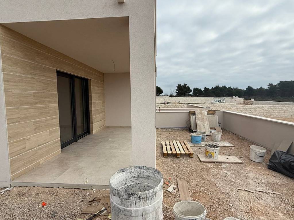 Prodaje se stan ukupne korisne površine 81 m² (s uračunatim koeficijentima), koji dolazi s pripadajućim dvorištem i osiguranim 2 parking mjesta. Stan je smješten u prizemlju, oznake S1 u stambenoj zgradi s ukupno četiri stambene jedinice. Riječ je o novogradnji, trenutno u završnoj fazi izgradnje, s planiranim dovršetkom radova do ljeta 2026. godine. Zgrada se gradi kvalitetnim materijalima i biti će opremljena prema posljednjem standardu gradnje. Stan se sastoji od ulaznog prostora, dvije spavaće sobe, dnevnog dijela s izlazom na natkrivenu terasu. Nekretnina se nalazi na izvrsnoj lokaciji i mirnom dijelu Vodica na udaljenosti samo 1,2km od centra grada i plaže, što omogućava jednostavan pristup svim sadržajima i uživanje u mediteranskom načinu života. Jedna od glavnih prednosti ovog stana je ograđeno dvorište površine cca 103 m², koje budućem vlasniku pruža privatnost i brojne mogućnosti uređenja prema vlastitim željama. Uz stan dolaze dva parkirna mjesta, dok će točne kvadrature stana, dvorišta i parkirnih mjesta biti definirane etažnim elaboratom. Ovaj prizemni stan idealan je za sve koji traže novogradnju blizu centra i plaže, s vlastitim dvorištem i parkirnim mjestima. Funkcionalan raspored, visokokvalitetni materijali i tehnička oprema osiguravaju udobnost i sigurnost, a prizemni položaj olakšava pristup i korištenje vanjskog prostora. Stan predstavlja izvrsnu priliku za miran i kvalitetan obiteljski život te idealnu opciju za odmor ili investiciju. Karakteristike i korisne informacije Fasada: stiropor 10cm. Stolarija: PLASTIČNA, PROFIL REHAU, svi prozori imaju komarnike i rolete s električnim podizačima. Balkonska stijena: aluminjska (ALU) izvedba, boja antracit-obostrano, rolete s električnim podizačima. Bez komarnika. Keramičke pločice u cijelom stanu i terasi. Klima uređaji: u dnevnom boravku i spavaćim sobama. - jedna vanjska jedinica na krovu i tri unutarnje. Podno grijanje: dnevni boravak, ulazni prostor i kupaonica. Protuprovalna i protupožarna vrata. Sanitarije u kupaonici: walk in tuš, električni bojler, wc školjka. OSTALO: NATKRIVENA TERASA, PARKING, PROTUPOŽARNA I PROTUPROVALNA VRATA GRIJANJE: klima i podno DOZVOLE: VLASNIČKI LIST, GRAĐEVINSKA DOZVOLA