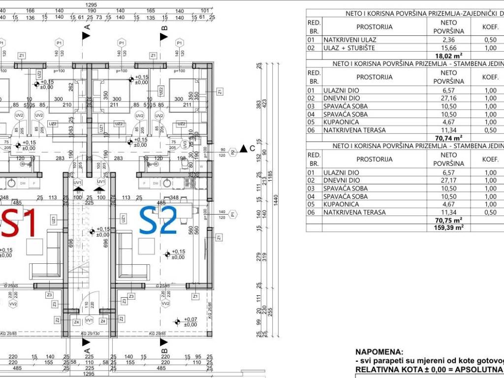 OSTALO RASPOLOŽIVO U STAMBENOJ ZGRADI: STAN S2- 83m2 - prizemlje sa dvorištem i 2 parkirna mjesta 2 SPAVAĆE SOBE, KUPATILO, ULAZNI DIO, DNEVNI DIO S IZLAZOM NA NATKRIVENU TERASU I DVORIŠTE OD CCA 113M2. STAN ĆE IMATI OPREMLJENU KUHINJU. PODNO GRIJANJE SAMO U KUPAONICI. KLIMA UREĐAJI U DNEVNOM BORAVKU I SPAVAĆIM SOBAMA. KERAMIČKE PLOČICE U CIJELOM STANU I NA TERASI. SANITARIJE U KUPAONICI. CIJENA: 259 000eur.