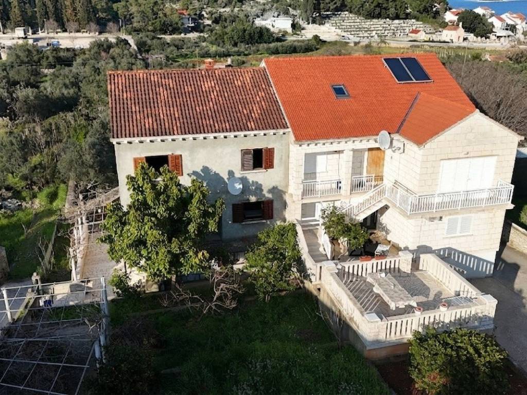 A semi-detached house is for sale, located in a peaceful street in Lumbarda, just a few minutes walk from the sea. Although it is not situated in the first row by the sea, the property offers an open view of the sea, the bay, and a small marina in Lumbarda.