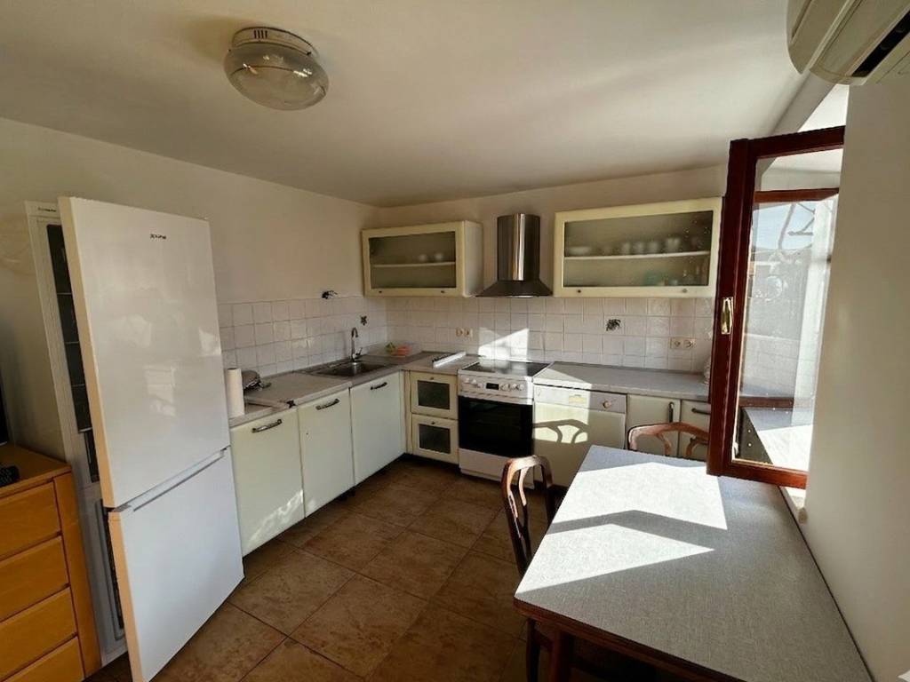 The ground floor is fully finished and consists of a one-bedroom apartment currently used for tourist rentals during the summer season. The first and second floors are in roh-bau condition, providing the future owner with the flexibility to design and arrange the space according to their own preferences, including possible modifications and alterations. There is also the option to create a duplex apartment, depending on the wishes and needs of the future owner.