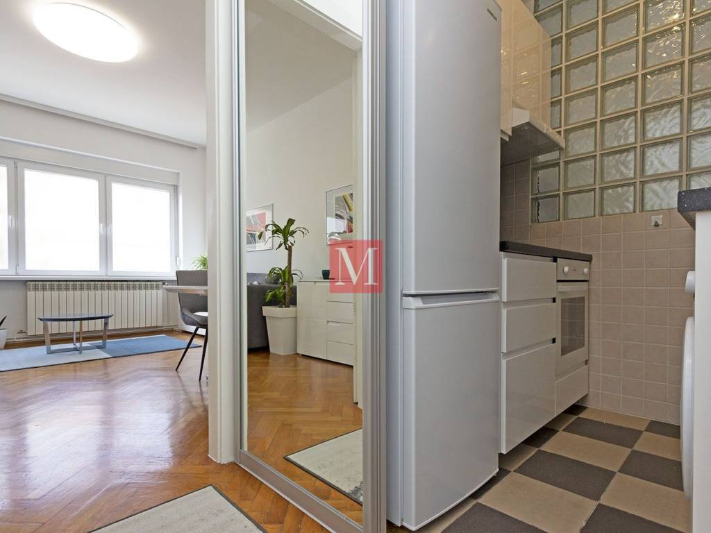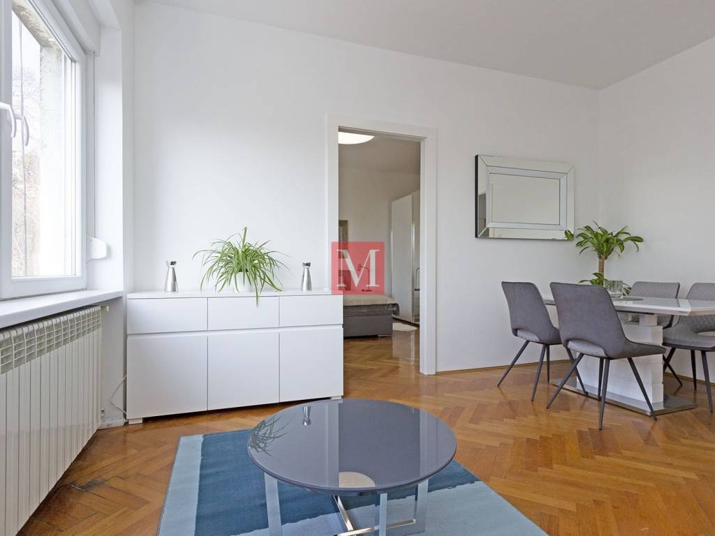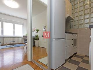 Newly renovated one bedroom apartment of 50m2 with a view of the city on the 3rd floor of a building in a quiet elite location of Šalata in Novakova street. It consists of an entrance hall, kitchen, living room with dining area, bedroom and bathroom (shower). The apartment has new exterior pvc carpentry, new condensing boiler, all furniture and appliances are brand new and never used. Parking is public on the street or in the nearby garage on Lang square, which is only a 2-minute walk from the building. The apartment is surrounded by greenery, and it is located near sports and recreational center Šalata, the city center and all important amenities. Long term lease with a mandatory deposit. Agency commission: 1 month rent+VAT.