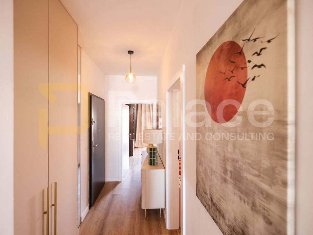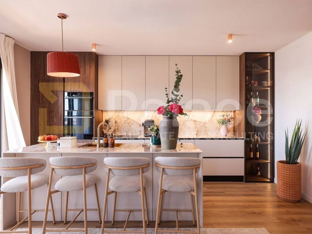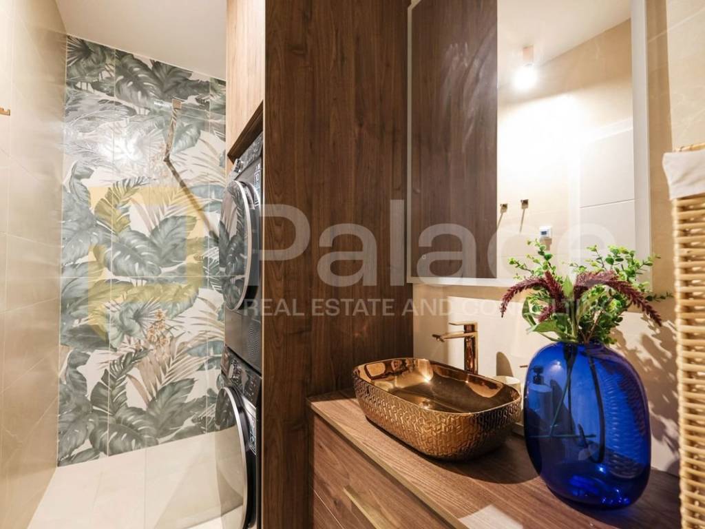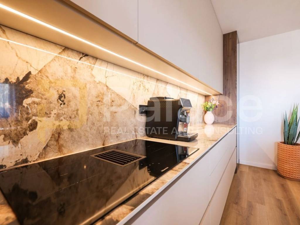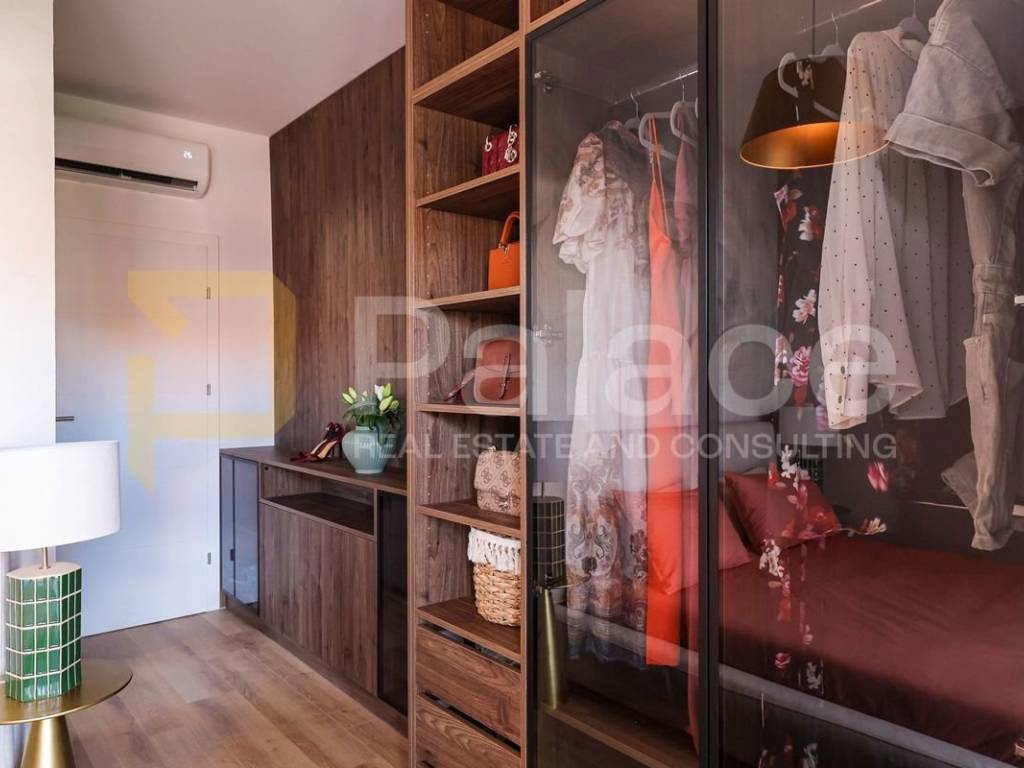 The apartment is sold fully furnished, with high-quality equipment and finishes, as well as air conditioning and underfloor heating.