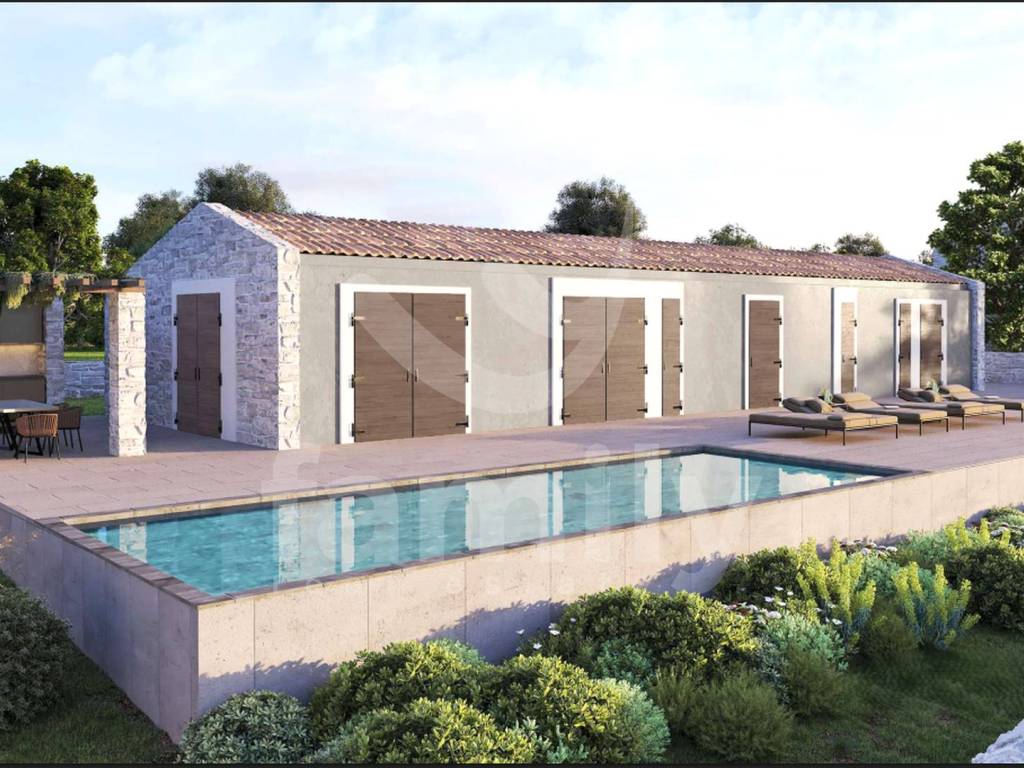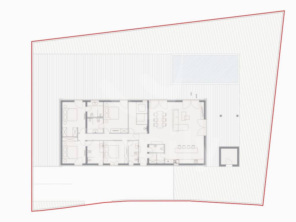 In such an environment, a 900 m² plot of land is located, slightly irregular in shape, surrounded by greenery and an open, beautiful view that further emphasizes the exclusivity of the location. The total area of the house in the projects is 206.90 m2. A project has been created for the construction of a detached single-storey house with a functional and modern layout for the property in question. Next to the pool and the house there will be a covered area with an outdoor kitchen. The designed house will consist of four bedrooms, four bathrooms, an additional toilet and a spacious living area that combines the kitchen and dining room with access to the terrace. The outdoor area will include a terrace with an in-ground pool and an associated engine room of 8.90 m², ideal for complete enjoyment and privacy. Access to the plot is provided from the road on the southwest side, which further contributes to the practicality and functionality of the location itself.