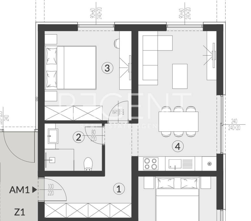 One-bedroom apartment on the ground floor, located in the peaceful settlement of Volme near Pula. The apartment is located in a modern new building with high energy efficiency and is suitable for year-round living, vacation or tourist rental. The total net area is 44.16 m², and consists of a hallway with a wardrobe, a bathroom, a bedroom and a living room with a kitchen and dining area. The apartment also has a garden of 4.59 m² and a parking space PM8 of 3.12 m², which makes a total of 51.87 m². It is equipped with underfloor heating in all rooms, Mitsubishi air conditioning, PVC joinery with triple-layer glass and aluminum blinds on an electric motor. High-quality Marca Corona ceramic floor covering is installed, and the facade is made with additional insulation and natural Travertino Classico stone. The location is quiet and surrounded by greenery, close to schools, kindergartens, shops and all amenities. Cape Kamenjak and the sea are in the immediate vicinity, and Pula Airport is only a 15-minute drive away. Purchase is possible directly from the investor, without commission and without real estate sales tax. For additional information or viewing, feel free to contact us.