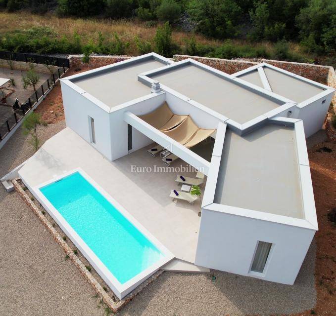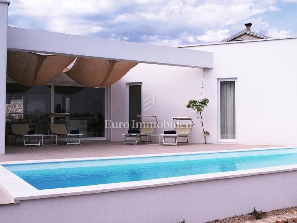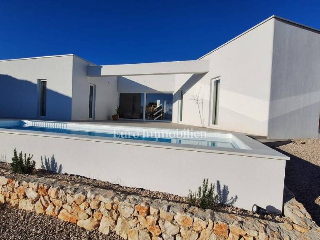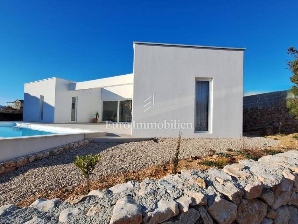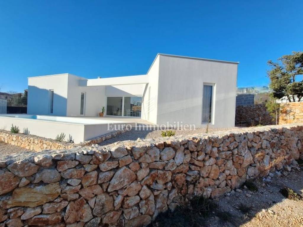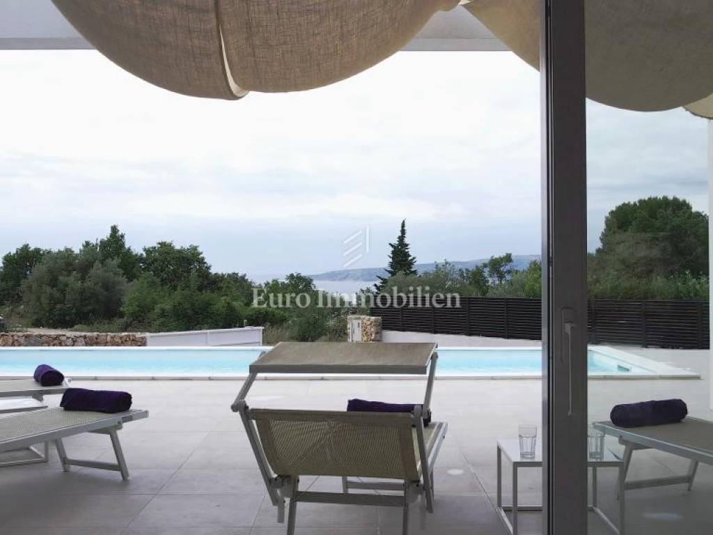A modern house for sale with a beautiful view of the sea, newly built in a quiet location near the town of Krk.