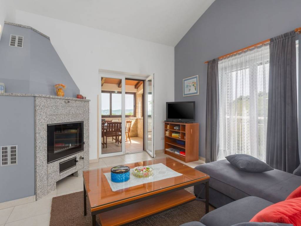 Spacious living room with fireplace and SAT TV