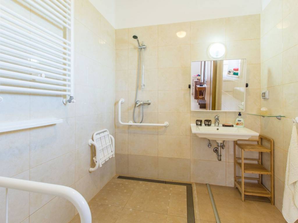 The house was designed with an emphasis on functionality and accessibility — the ground floor and garden, including the pool, are adapted for people with reduced mobility.