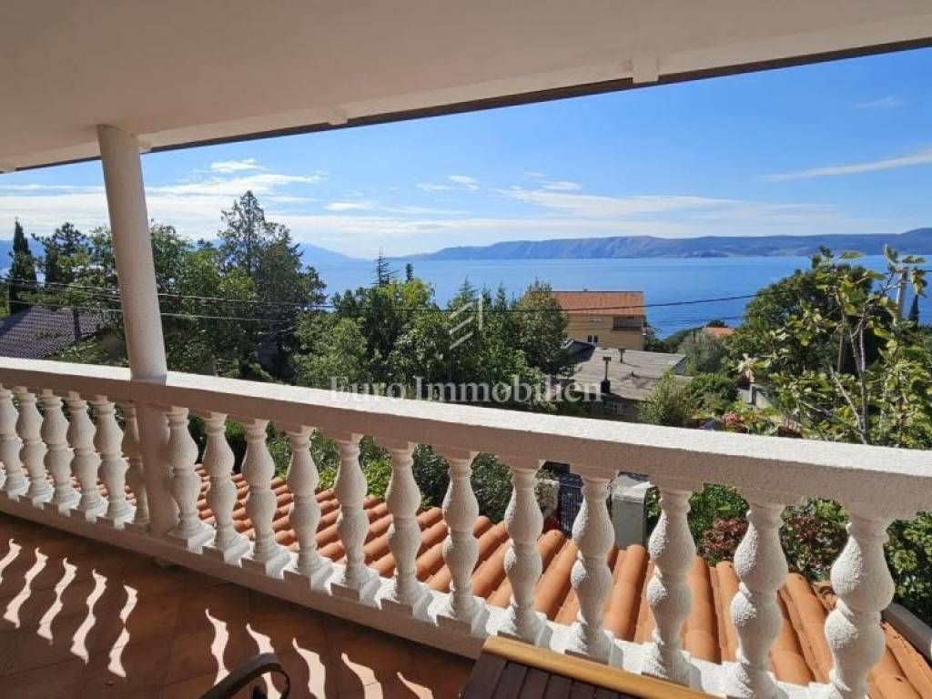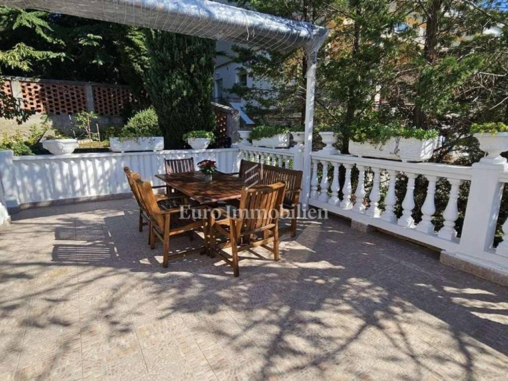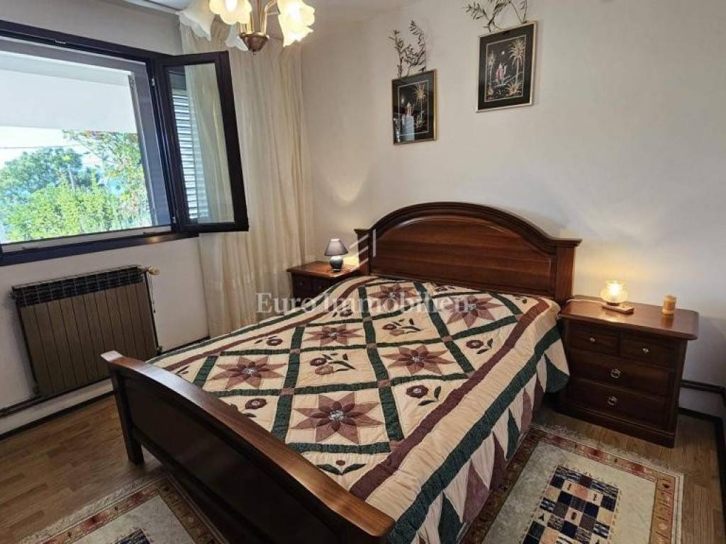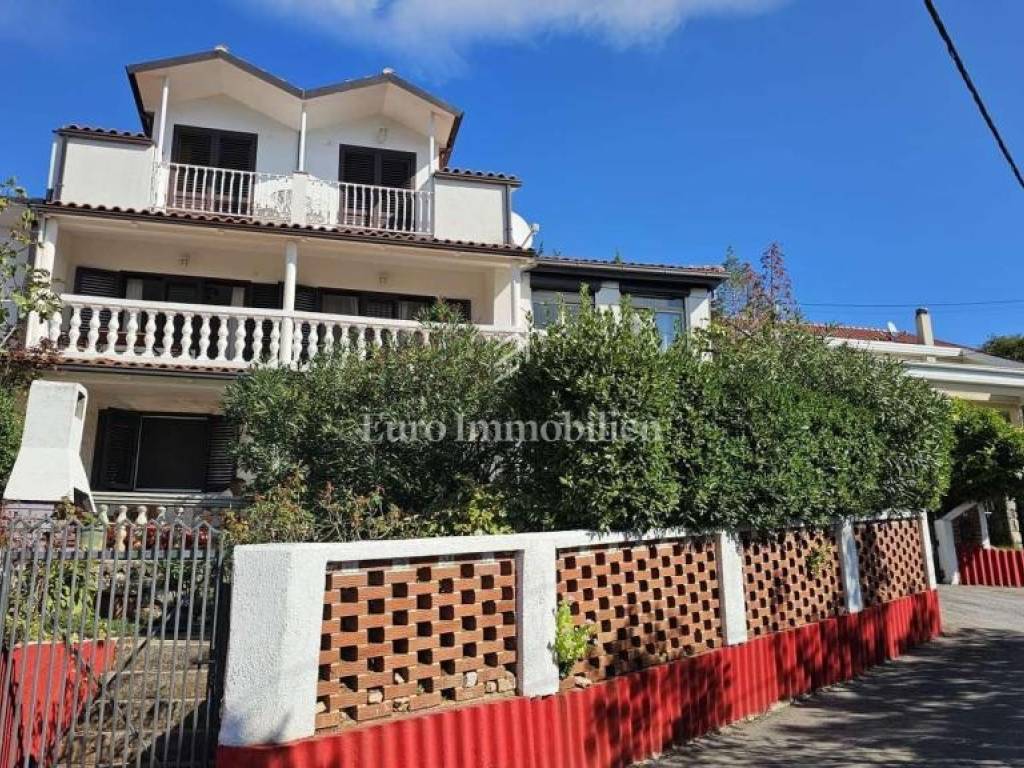 The second floor also has a terrace in front of the main entrance, two bedrooms, bathroom, kitchen, living room and dining room and a balcony with a beautiful view of the sea and the island of Krk. The heating is on the air conditioner.