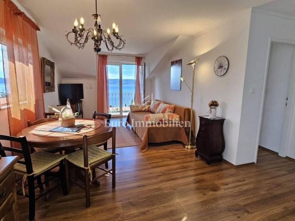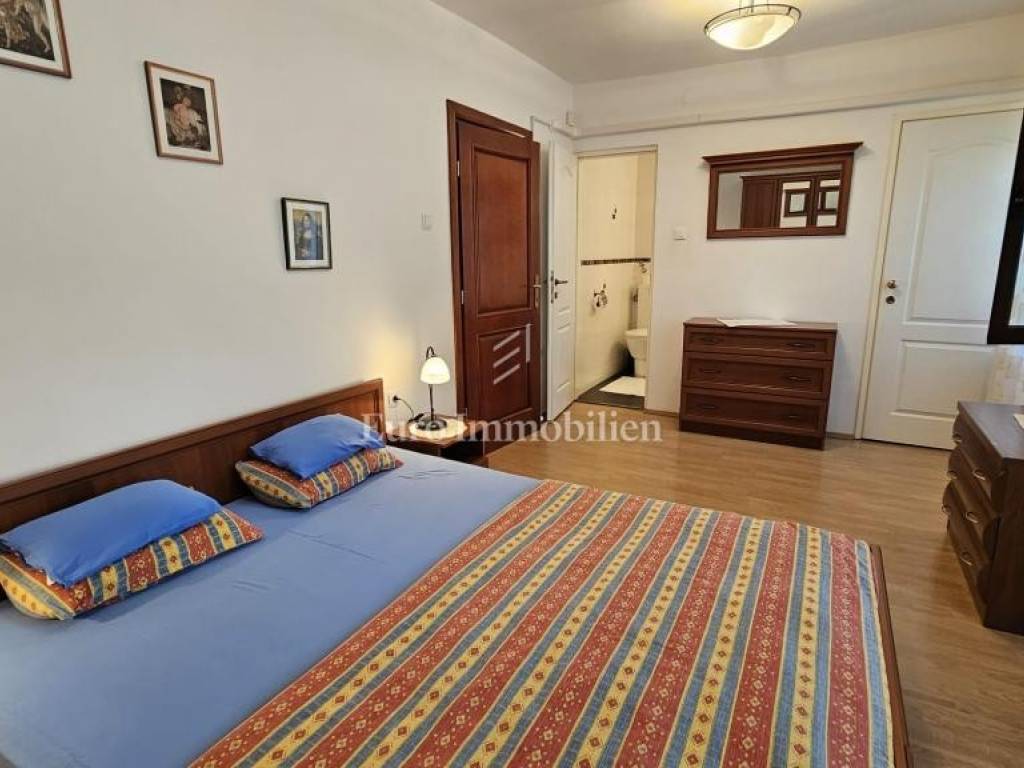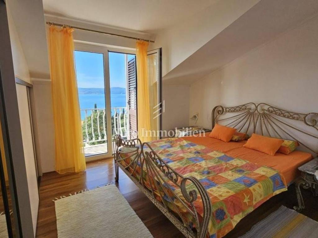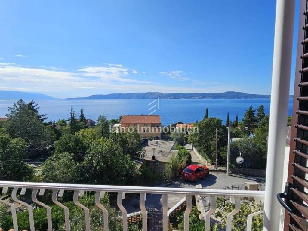 The second floor also has a terrace in front of the main entrance, two bedrooms, bathroom, kitchen, living room and dining room and a balcony with a beautiful view of the sea and the island of Krk. The heating is on the air conditioner.