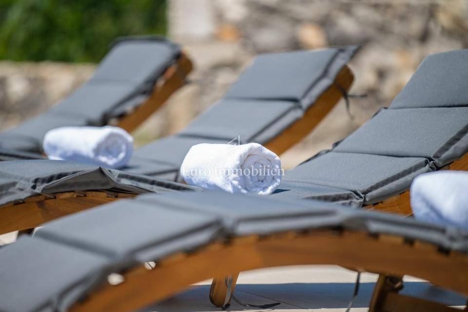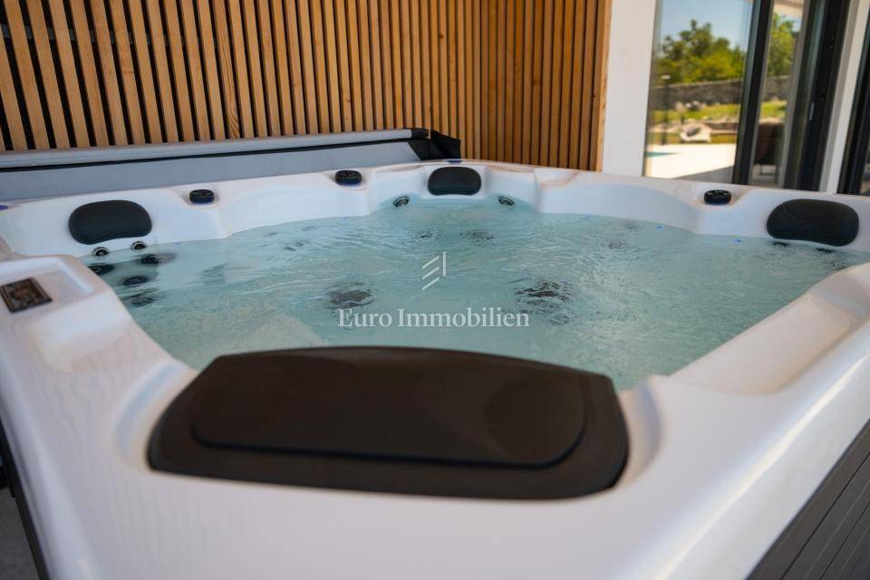 Outdoor area: *Fenced and landscaped garden *Heated swimming pool with sundeck *Summer kitchen *Hot tub *Carport with parking for up to four vehicles *Solar panels *Planned installation of an electric vehicle charging station