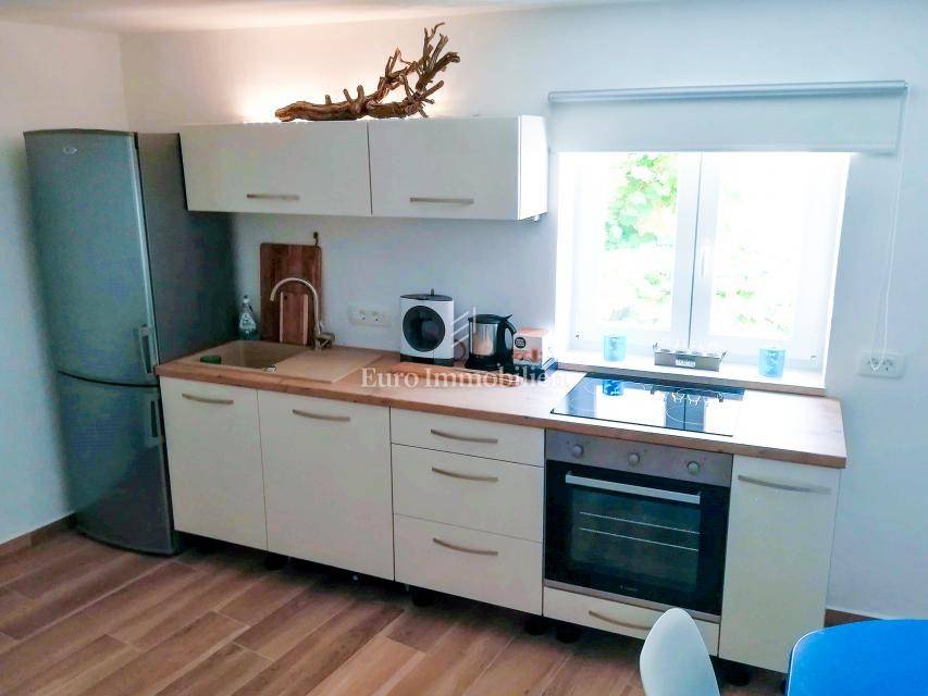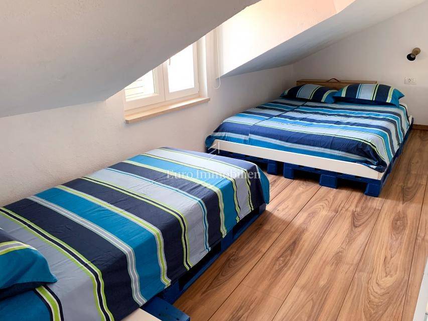 Baška - renovated stone house near the sea! A stone house for sale in the historical center of Baška, completely renovated in 2018. It consists of two residential units, a studio apartment located on the ground floor of the building and a two-story apartment with a gallery. The studio apartment has an area of 26 m2, and it has an entrance terrace within the courtyard of the building. The two-story apartment has a living area of 53 m2, with a terrace of 11 m2. On the first floor there is a living room and a bathroom, on the second floor there is a bedroom, as well as a gallery space with a view of the sea. The house is sold furnished and equipped, it has installed three air conditioners for heating and cooling and underfloor heating on all floors. There is a possibility of long-term parking space rental. Residential units are sold exclusively as a whole. The house was used for tourist purposes and it is possible to continue the business of the well-established lease. For more information, contact us!