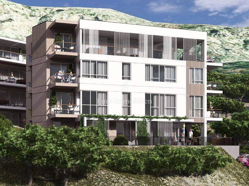 A new development project in Tučepi, located just 130 meters from the sea and beautiful beaches. The project includes two urban villas with elevators and a total of 12 apartments. Each villa consists of a basement with garage spaces (for sale at €15,000), a ground floor, and three upper floors.