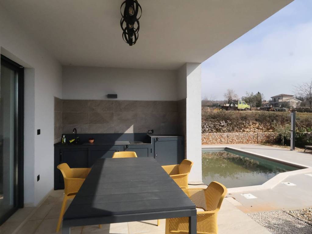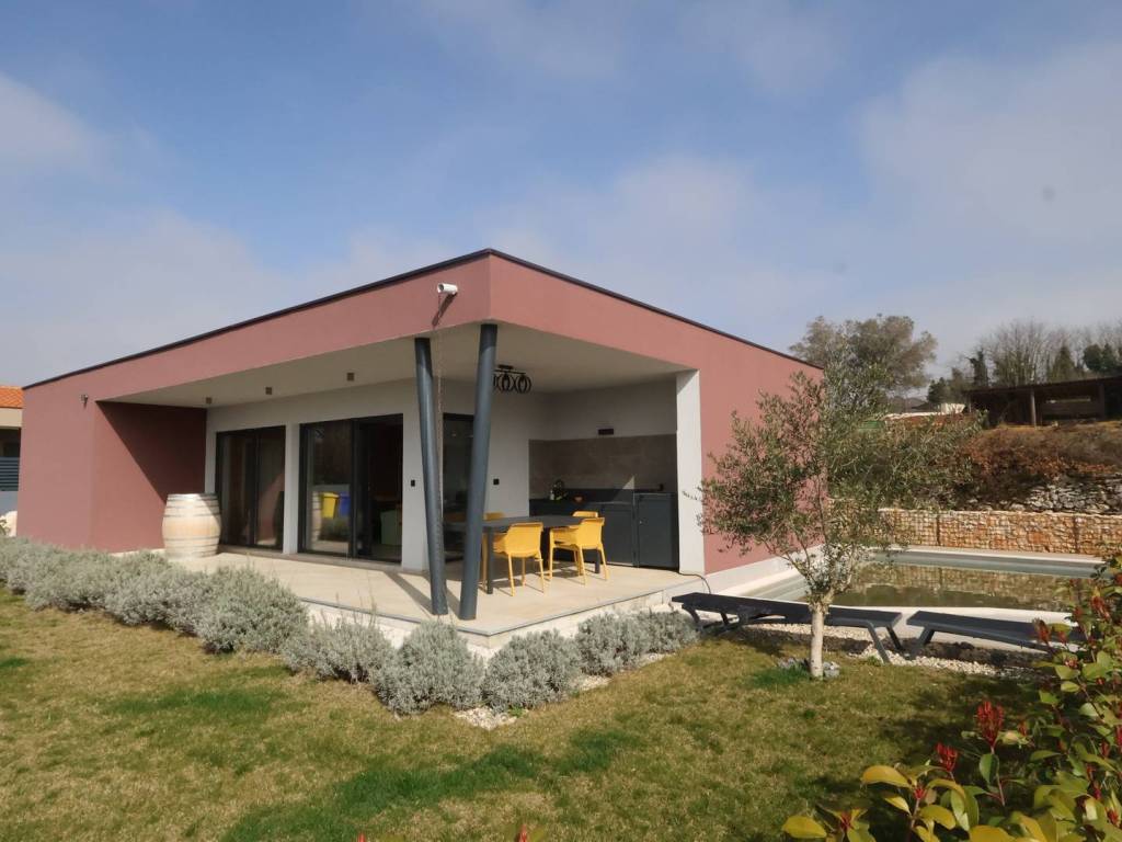 Posebne pogodnosti ove kuće uključuju dvorište, uređenu okućnicu, ljetnu kuhinju i bazen, idealne za opuštanje i druženje na otvorenom. Lijepo uređena okućnica opremljena je automatskim navodnjavanjem što doprinosi lakšem održavanju travnjaka i bilja oko kuće. Kuća se nalazi na kraju zadnjoj liniji urbanizacije što omogućava pogled na maslinik i prirodu.