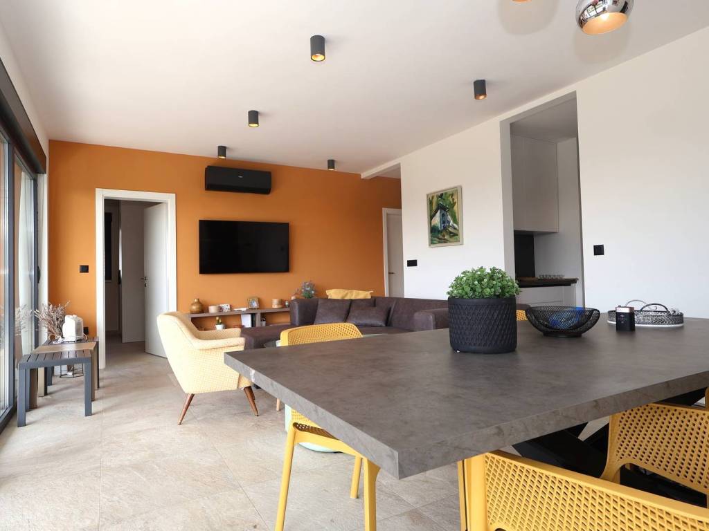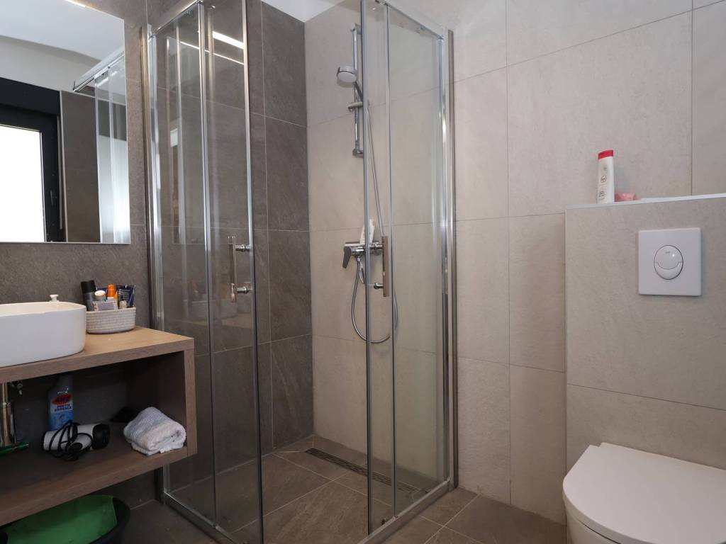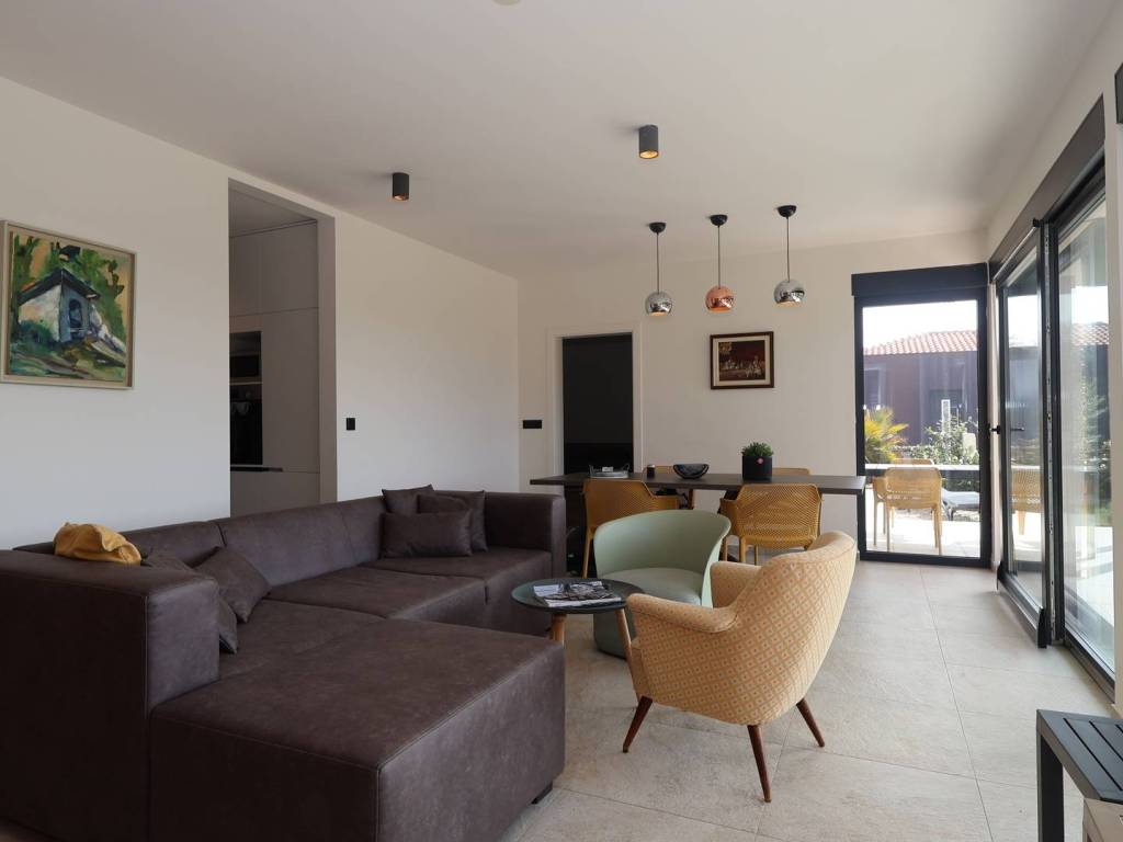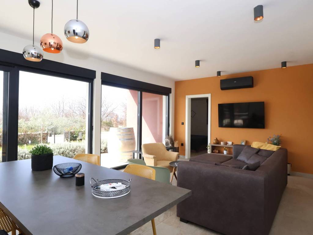 Unutar kuće nalaze se tri spavaće sobe, dnevni boravak sa blagovaonom, kuhinja, dva kupatila i toalet što je odličan raspored za obitelj ili turistički najam. Nekretnina je opremljena modernom kuhinjom s aparatima i ostalim namještajem što omogućuje trenutno useljenje. Energetski razred A pruža dodatnu vrijednost u smislu učinkovitosti i nižih režijskih troškova. Grijanje i hlađenje osigurani su putem klima uređaja.