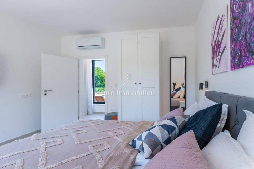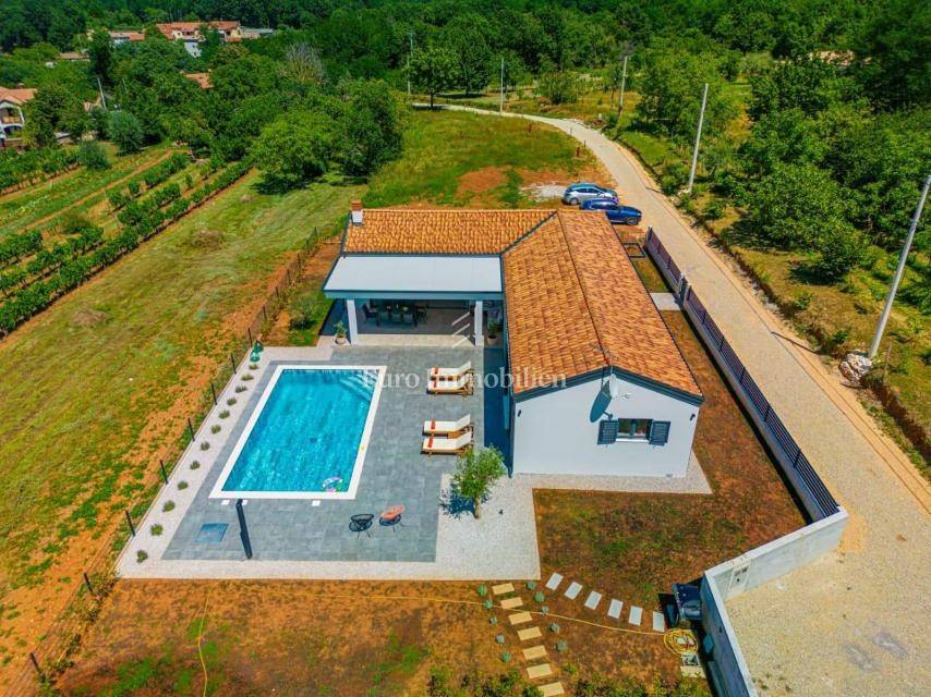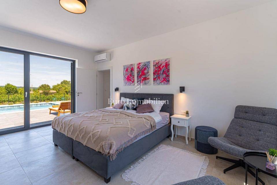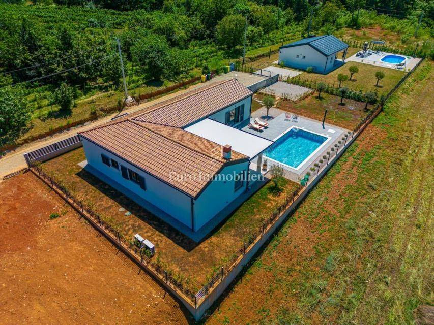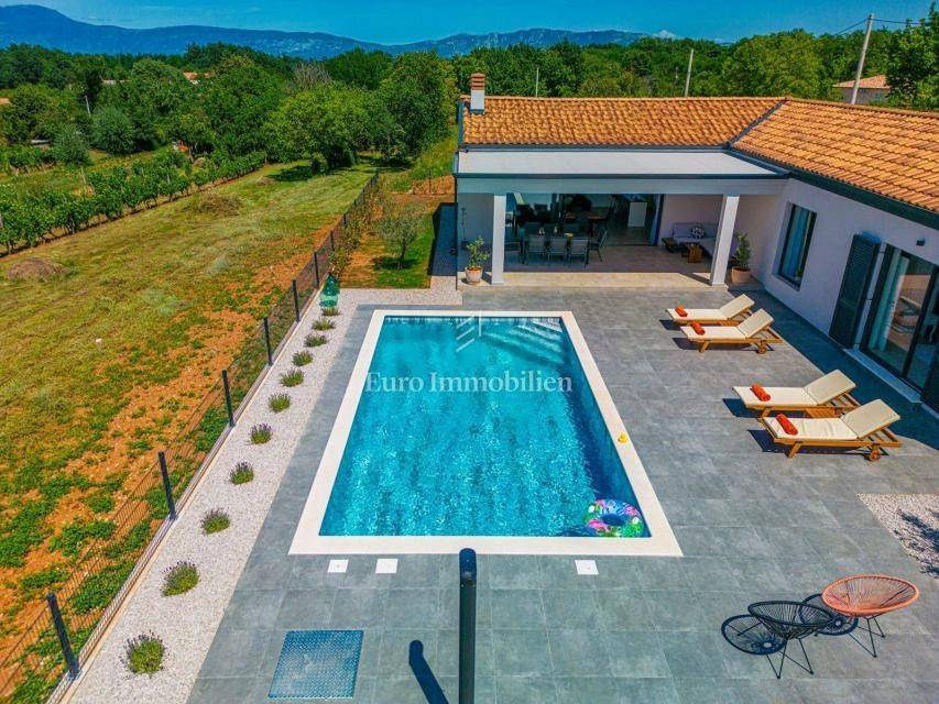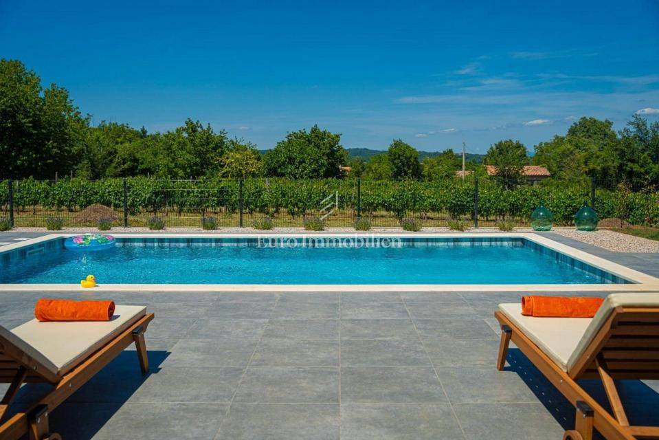 For sale is a modern house with a swimming pool with a total living area of 182 m2 located in a quiet place near Labin.