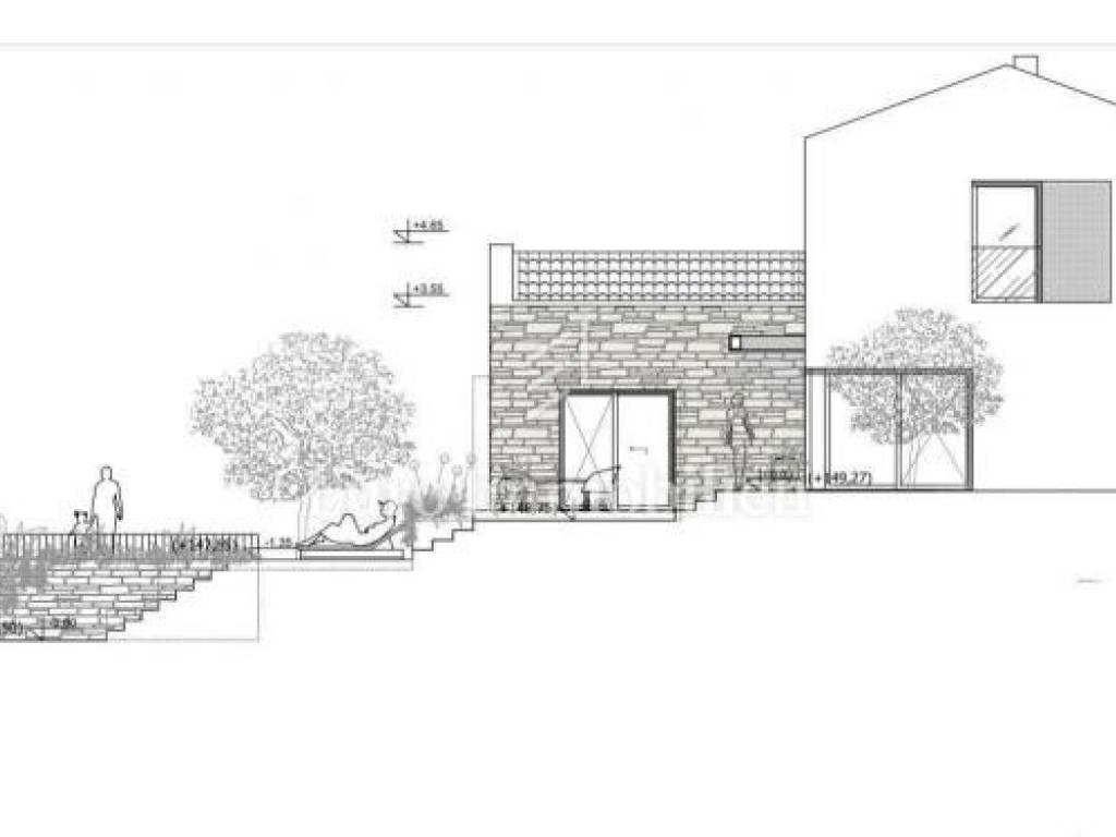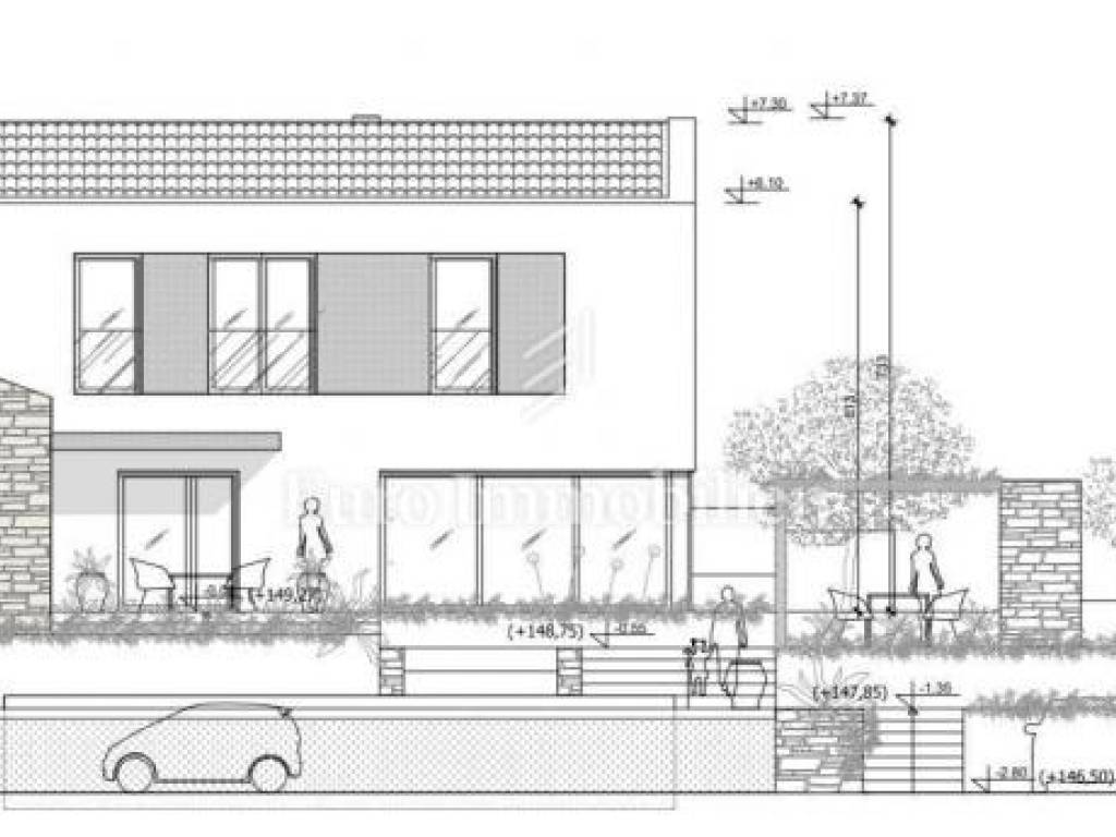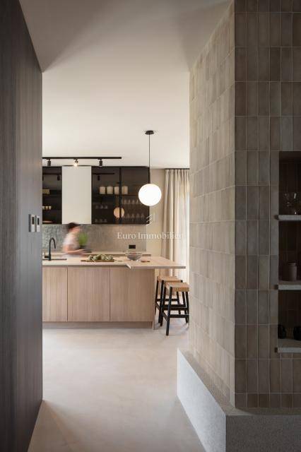 During the construction, high-quality materials and equipment were used, such as facade insulation 10 and 15 cm, PVC windows, aluminum sliding shutters in the rooms, sliding glass wall on the ground floor, water-based underfloor heating with a Mitsubishi heat pump, cooling system, filomuro doors, microtopping floor covering, Italian furniture and lighting.