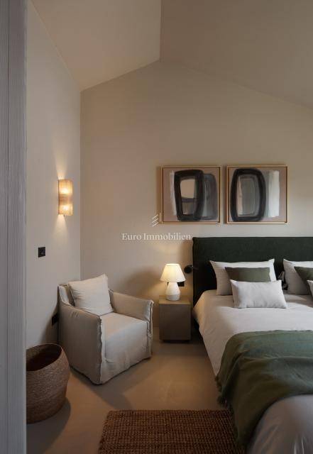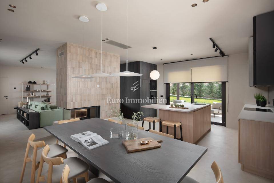 The villa has 180 m2 of interior living space on a total of 914 m2 of land. The plot has a nice, regular shape and as such allows maximum utilization for additional facilities in the garden. The villa consists of two floors - the ground floor, where there is an open-concept living room, bathrooms, wardrobes, and technical rooms for the central heating system and a laundry room with all the necessary connections and storage rooms. A special part of the ground floor is intended for Wellness with sauna and shower. There are three bedrooms with a separate bathroom on the first floor. In the fenced yard with olive trees, flowers and lawn with irrigation, there is a swimming pool with a heating system of 40 m2, a sun deck and a fireplace with a covered dining area where the summer kitchen is located. Parking is provided for two vehicles with a charger for electric vehicles. The price includes high-quality furniture and all equipment!