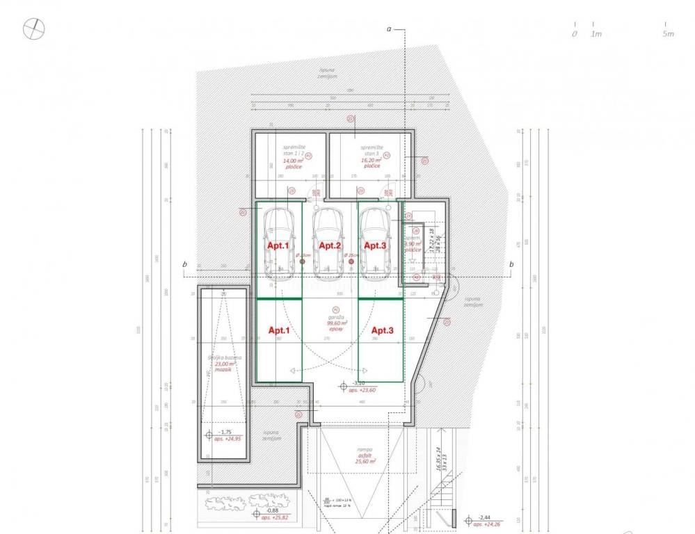 BASEMENT - garage (4 parking spaces - 1 for S1, 1 for S2 and 2 for S3), 2 storage rooms (one for S1 and the other for S2)