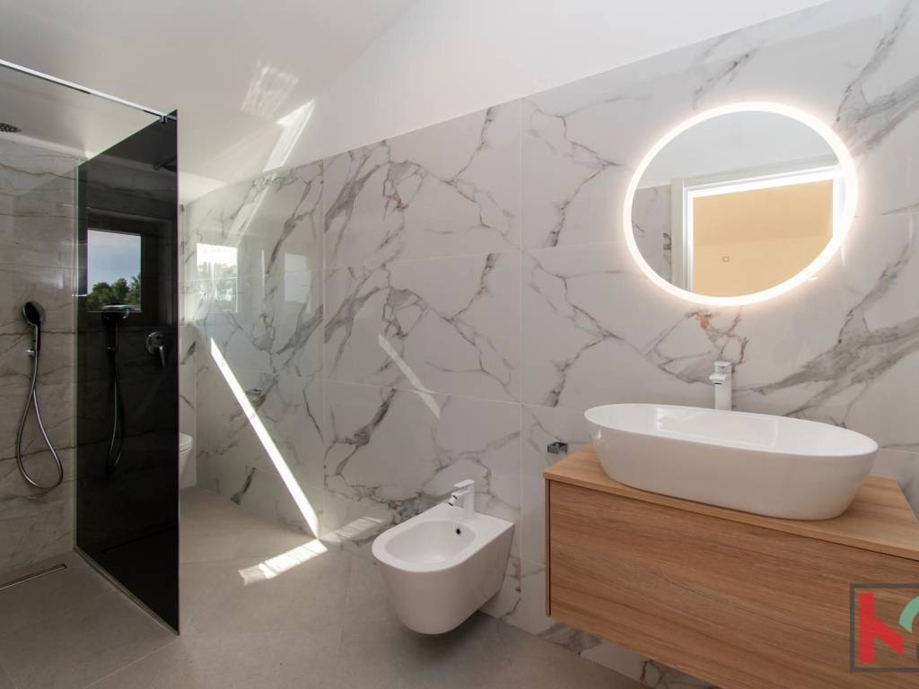 Vila ukupno raspolaže s 4 spavaće sobe, 6 kupaonica i 2 dodatna toaleta.