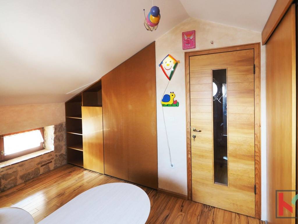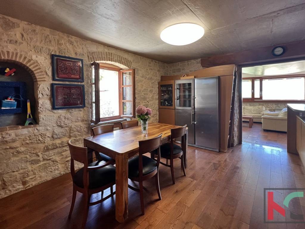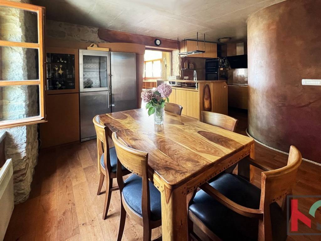 Ova jedinstvena nekretnina odiše arhitektonskim štihom staro/nove Istarske tradicije te je unikatna prilika za nove vlasnike sa umjetničkim senzibilitetom.