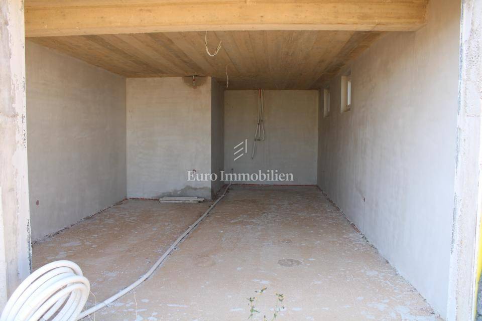 Apartment S2 is located in a semi-detached house, and extends over three floors (basement, ground floor and 1st floor) with 215 m2 of total usable area, a beautiful garden of approx. 300 m2, large terrace, outdoor pool 6 x 3 m, garage and parking space. In the basement there is a garage and a machine room. The ground floor consists of an entrance, hallway, bathroom, bedroom, large living room with kitchen and access to the terrace, garden and sun deck. Internal stairs lead to the first floor, where there is a hallway, laundry room, bathroom, three bedrooms, each with access to the terrace, and two rooms have their own bathroom. Three parking spaces are available.