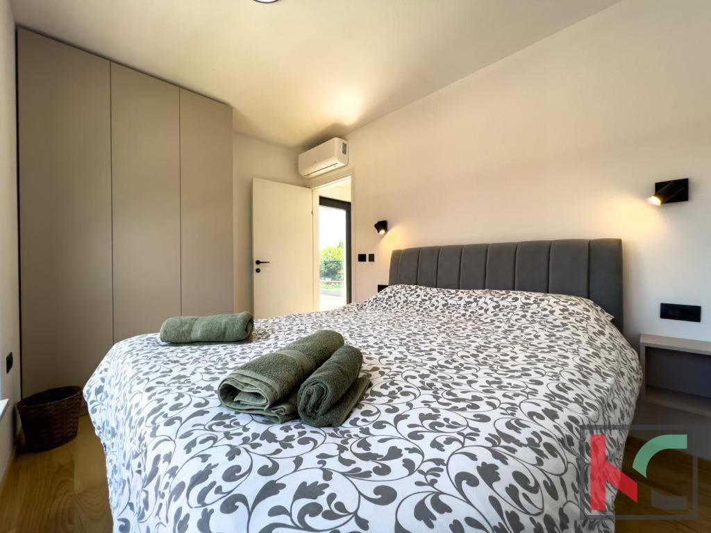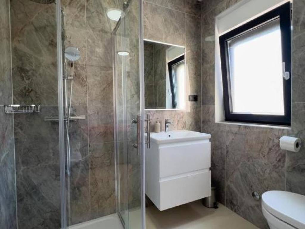 The interior of the house is equipped with a modern kitchen with appliances, and underfloor heating and air conditioning ensure a comfortable temperature throughout the year. The energy certificate A guarantees low energy consumption and high efficiency.