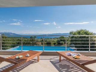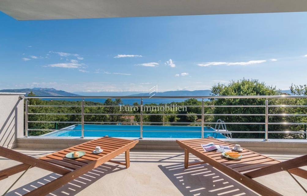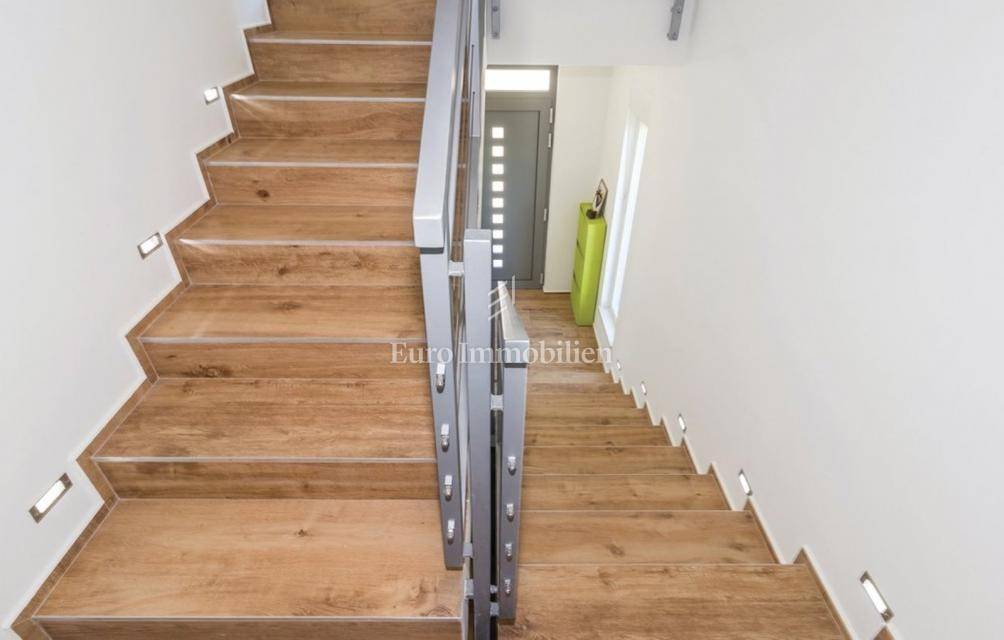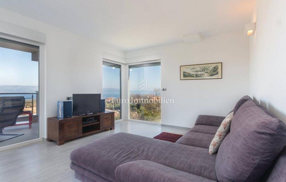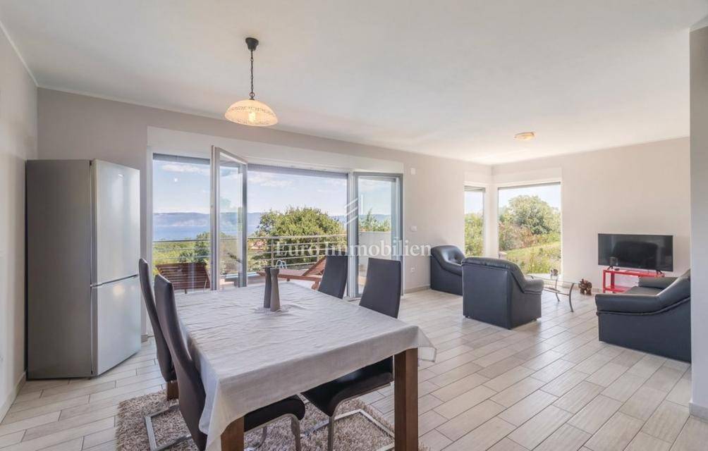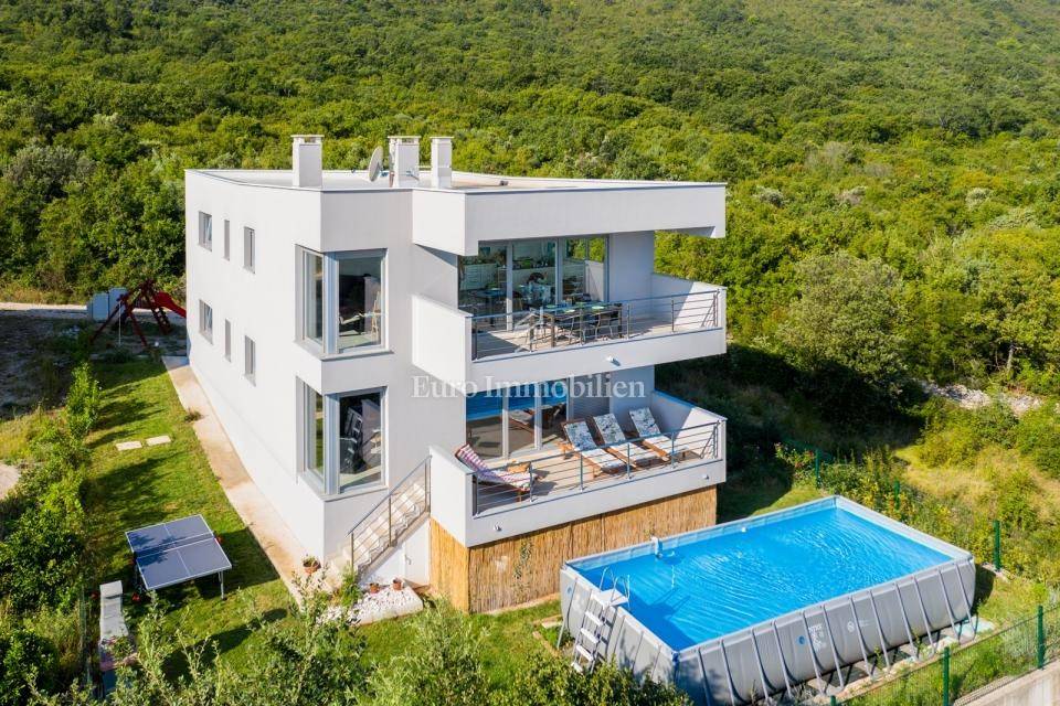 This newly built modern house with a swimming pool consists of 3 floors and is located in the small village of Drenje, near the town of Labin, with a stunning view of the entire Kvarner Bay and its islands. On the ground floor there is a garage and a sauna, while on the first and second floors there are two apartments and the house has a garden of 500m2. The house is located 10 minutes drive from the sea and from the town of Ravni, which is known for its sailors, surfers, diving and underwater fishing due to the exceptionally clear sea. There is a possibility of exchanging for an apartment in Rijeka or Zagreb for an additional fee.